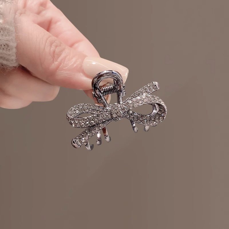 여자아이를 위한 다이아몬드 리본 머리핀, 앞머리 클립, 인터넷 연예인 탑 클립, 반묶음, 작은 사이즈, 여름 귀여운 일본식 검정색 머리핀