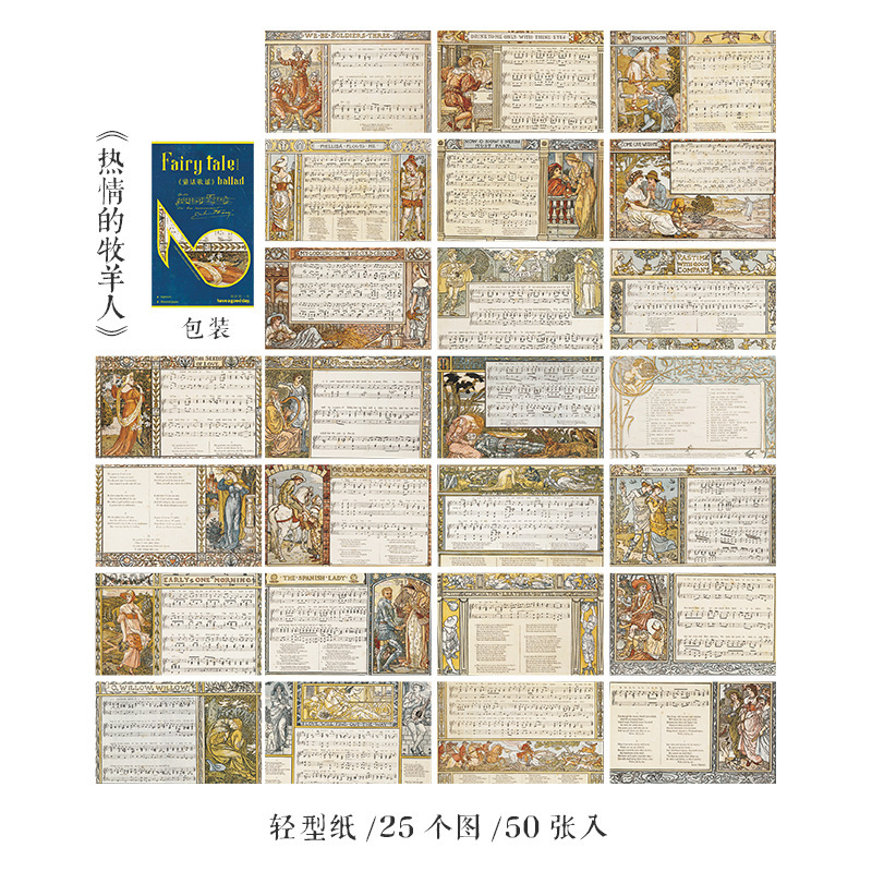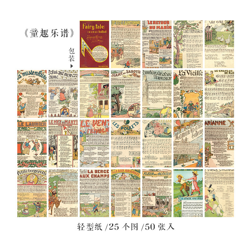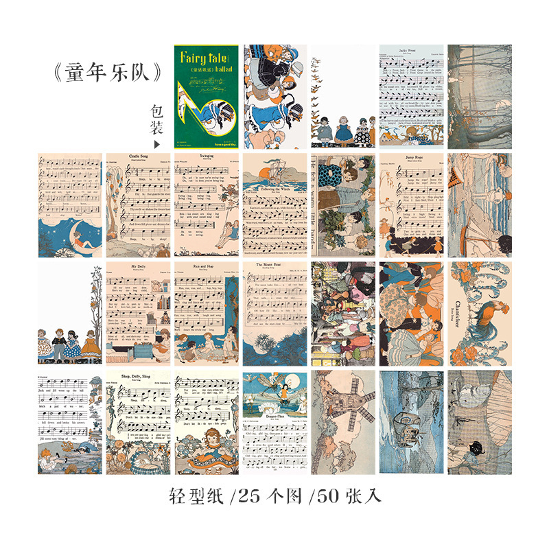 동화와 발라드 시리즈 아름다운 하루 재료 종이 복고풍 악보 핸드북 DIY 장식 기본 스티커 8 스타일스토어 가기