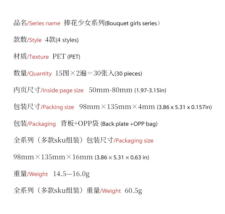 사탕 시 꽃다발 소녀 시리즈 PET 스티커 팩 30 소녀 꽃 DIY 장식 스티커 4 스타일스토어 가기