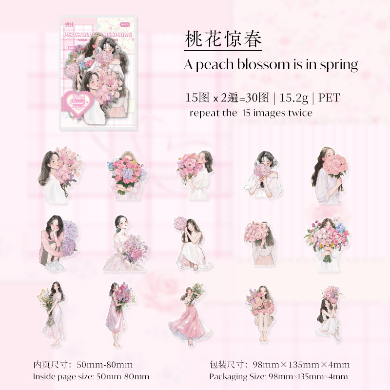 사탕 시 꽃다발 소녀 시리즈 PET 스티커 팩 30 소녀 꽃 DIY 장식 스티커 4 스타일