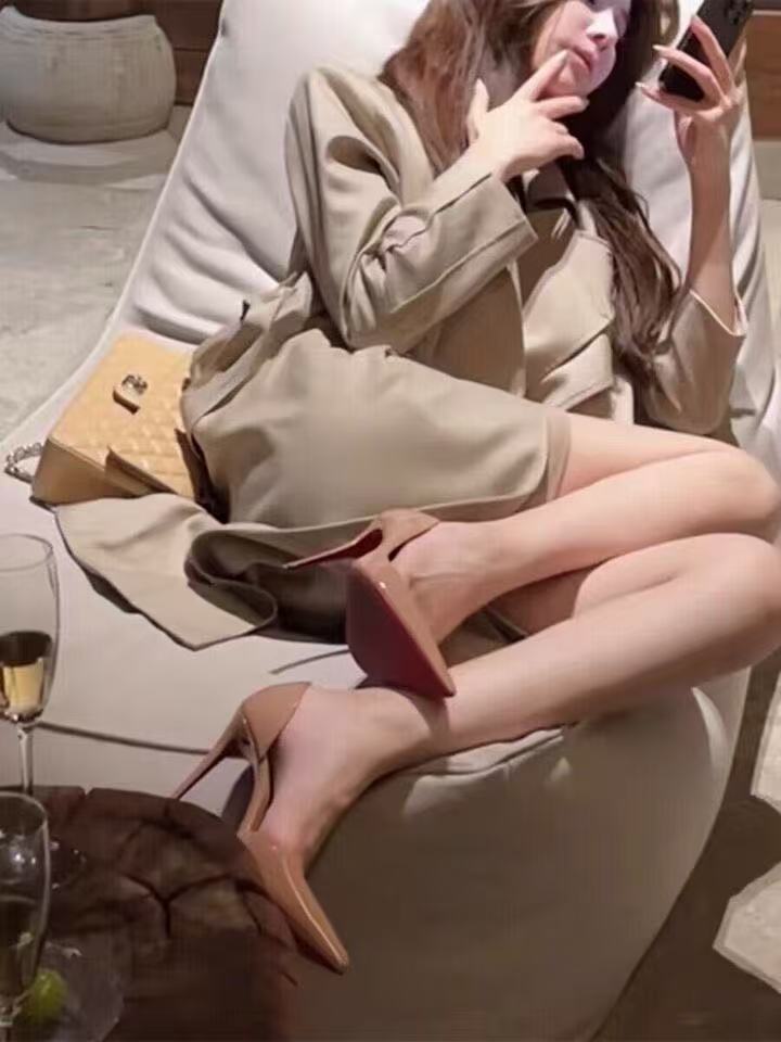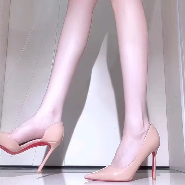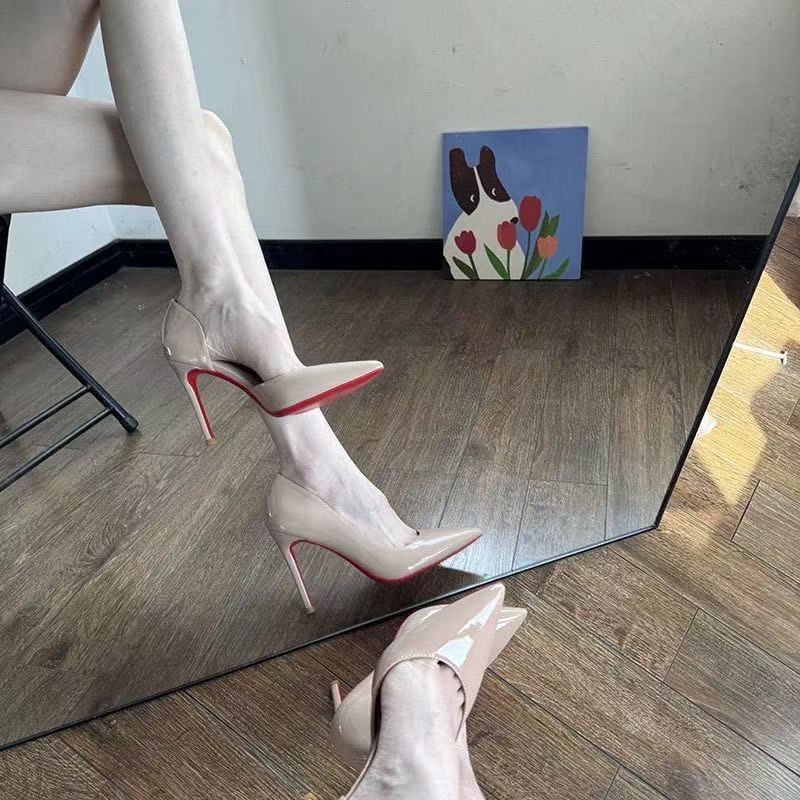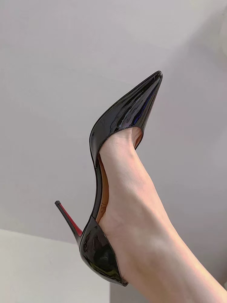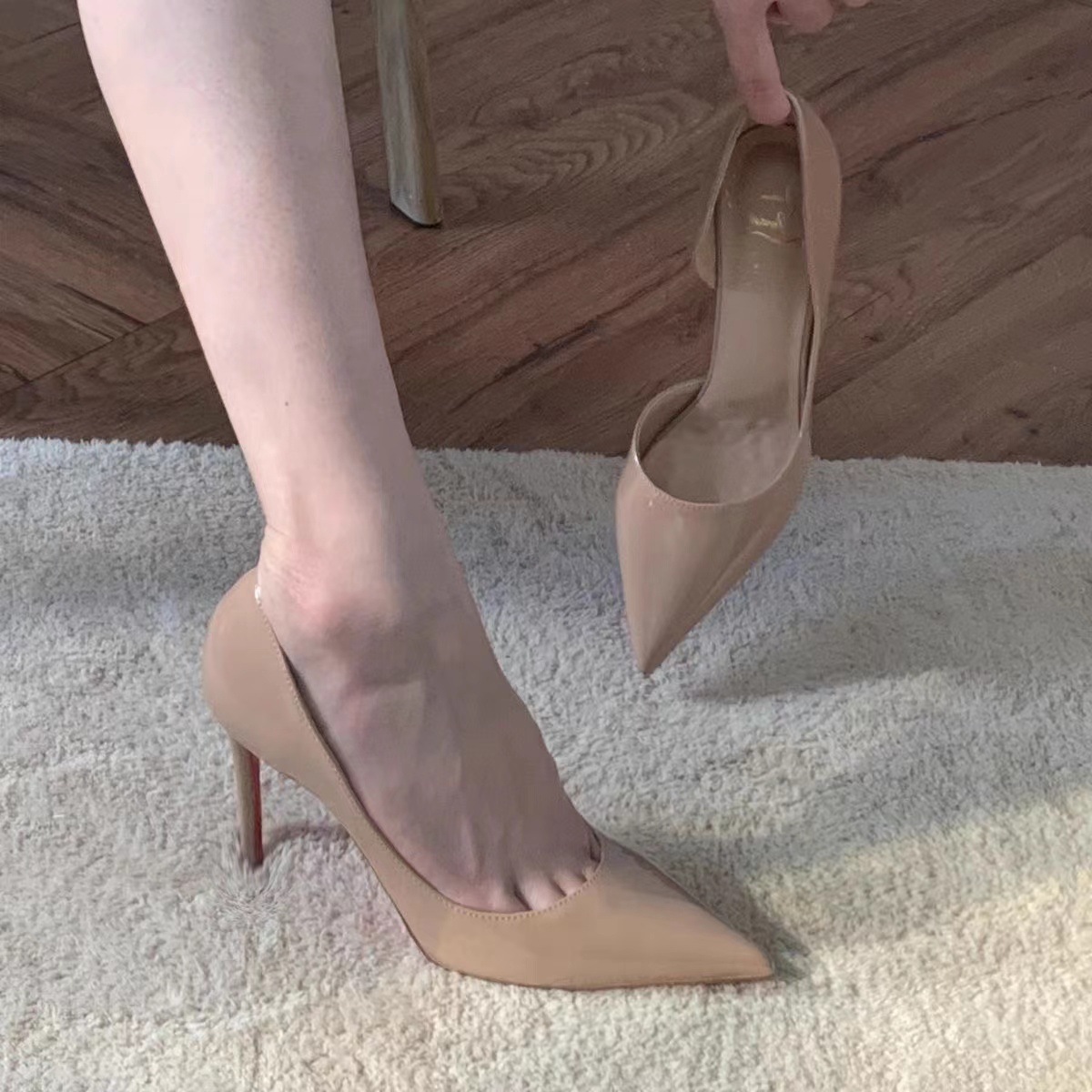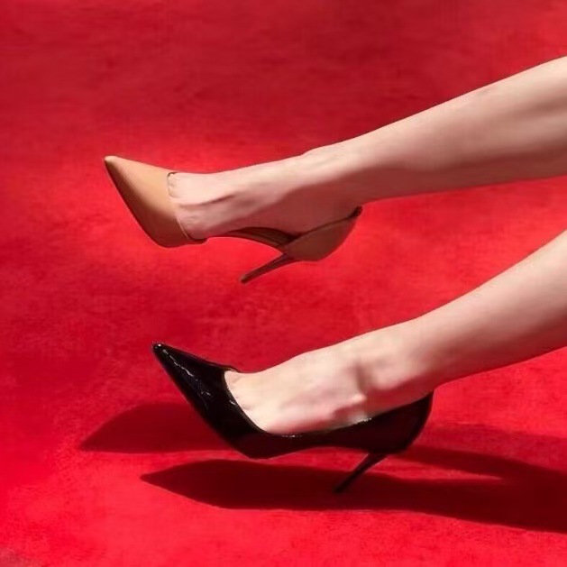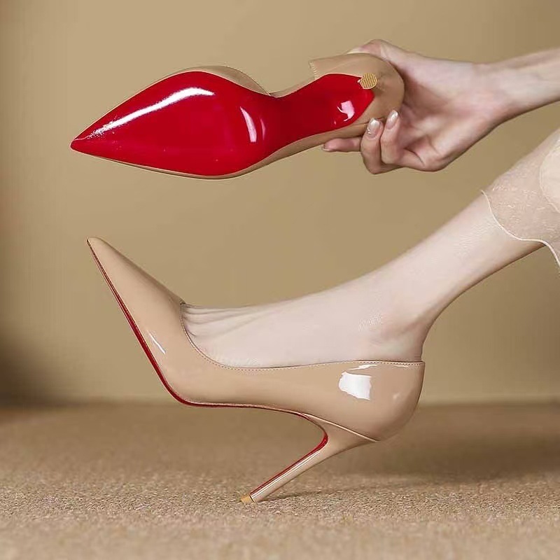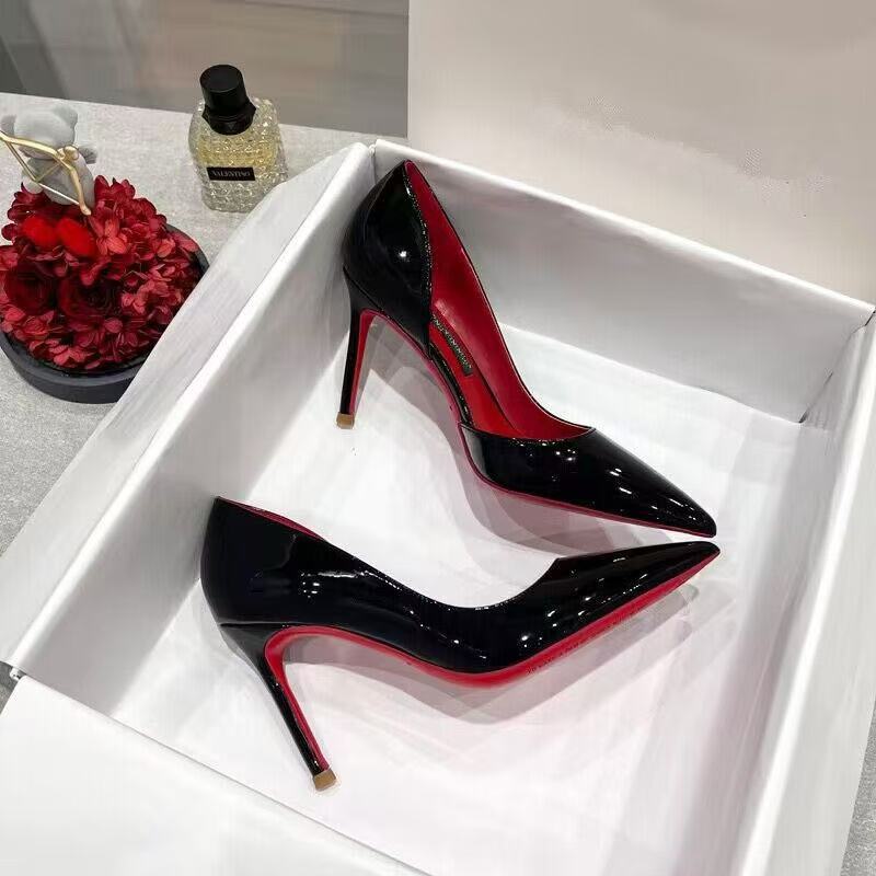 2025 봄 여성 페이턴트 가죽 컬러 레드 솔 스틸레토 포인티드 토 하이힐 섹시한 틈새 기질 9cm 패셔너블 블랙 슈즈스토어 가기