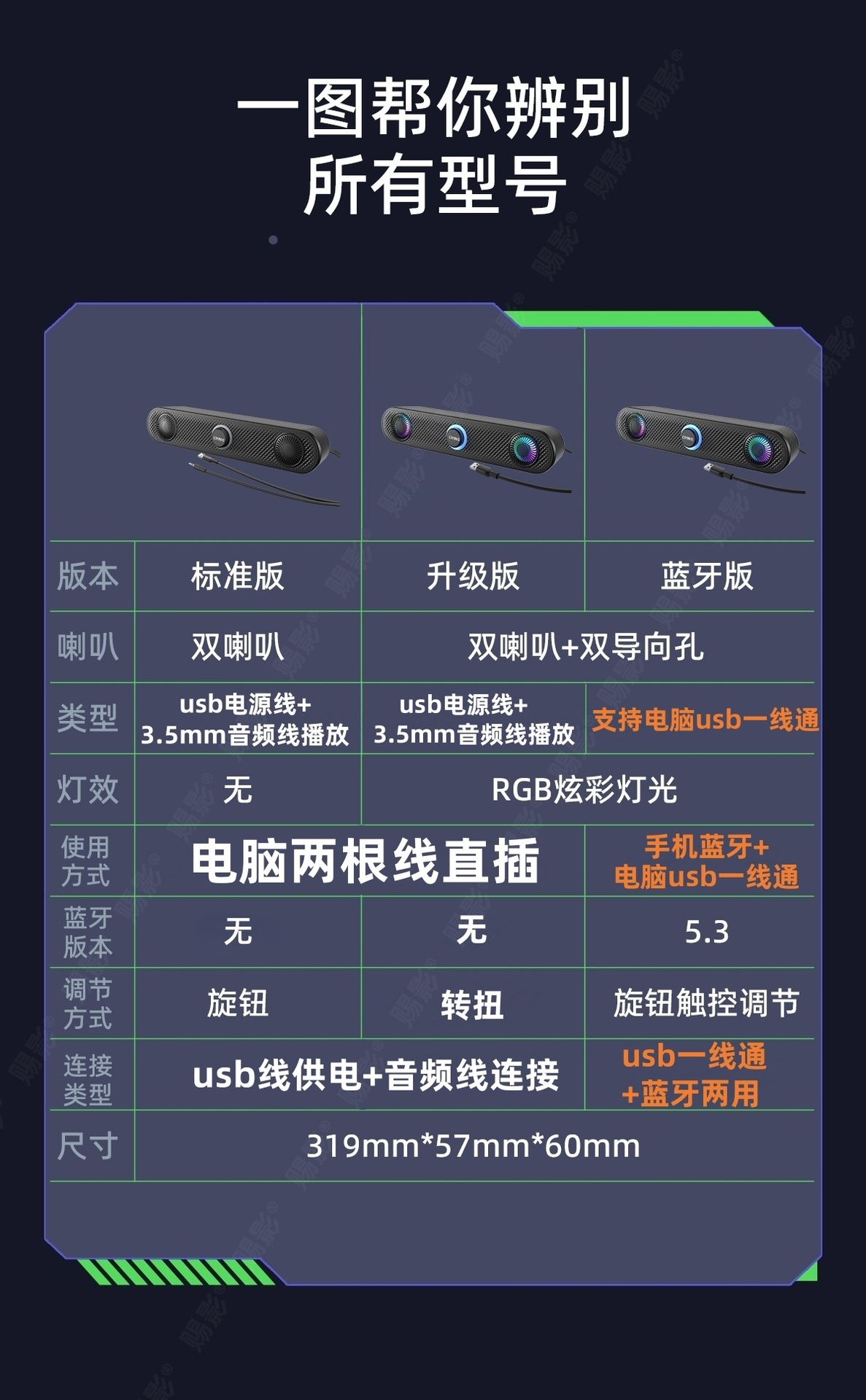 • 표준 버전 [USB 전원 공급 + 3.5mm 오디오 케이블 연결]