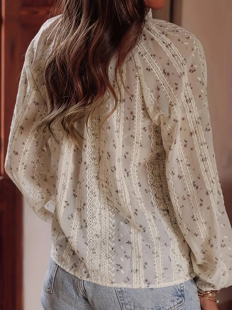 2025 유럽과 미국의 국경 간 대외 무역 여성 의류 우아하고 세련된 꽃 무늬 레이스 스플 라이스 프린지 셔츠 셔츠