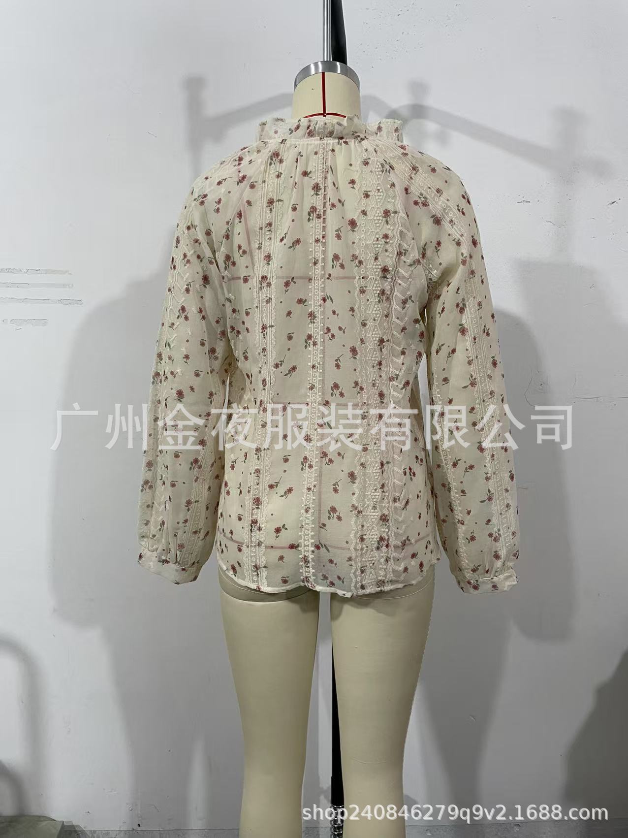 2025 유럽과 미국의 국경 간 대외 무역 여성 의류 우아하고 세련된 꽃 무늬 레이스 스플 라이스 프린지 셔츠 셔츠스토어 가기