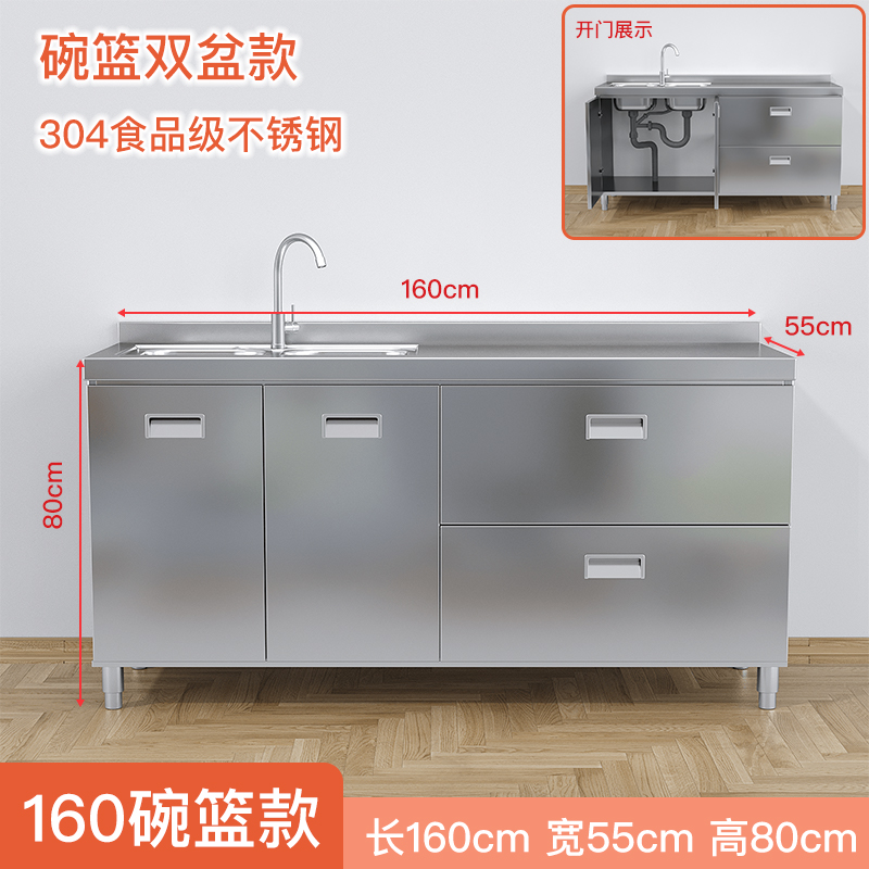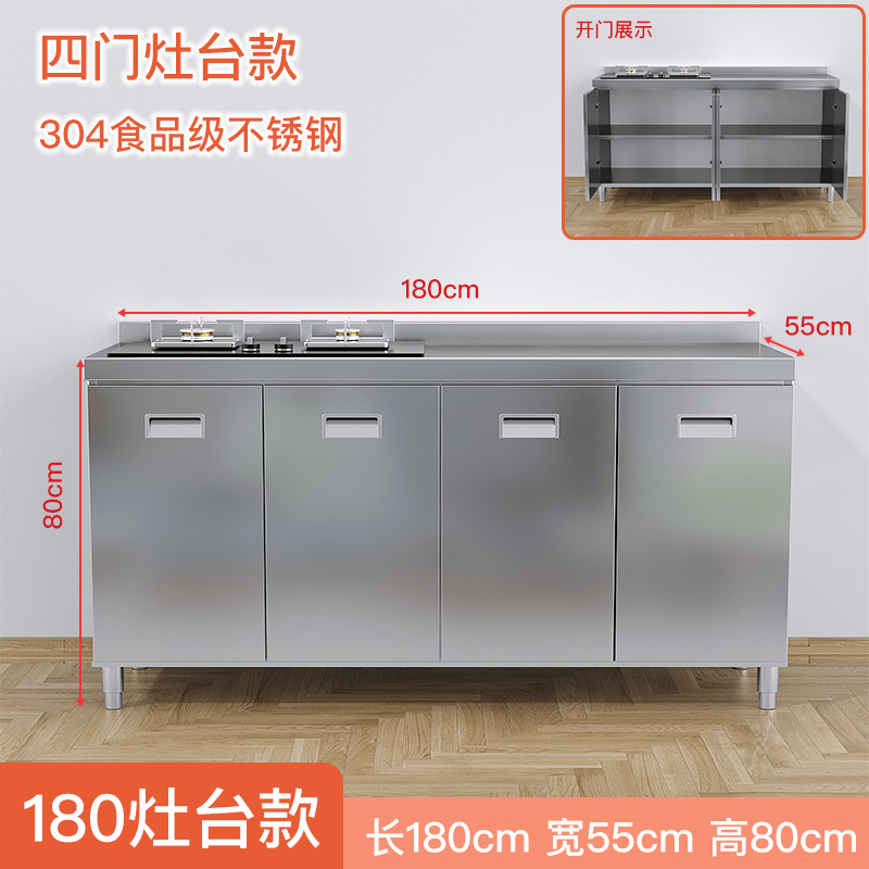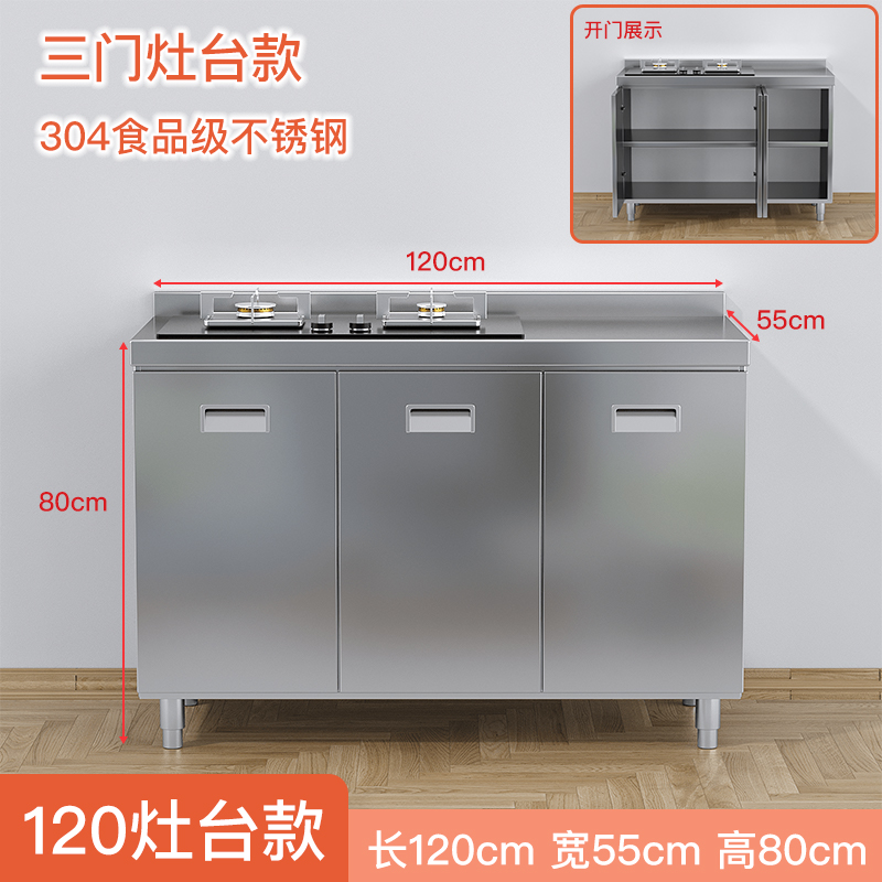 304 전체 스테인레스 스틸 주방 캐비닛 간단한 스토브 통합 스토리지 보관 캐비닛 가정용 소형 캐비닛스토어 가기