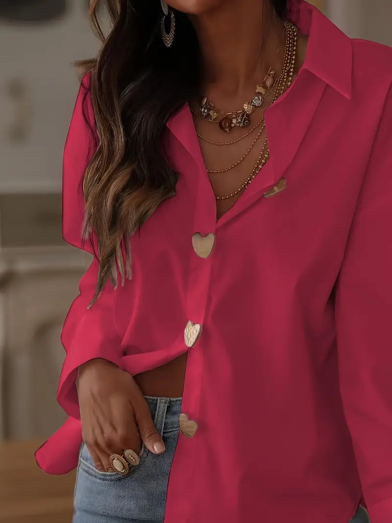 25 유럽과 미국의 국경 간 대외 무역 여성 의류 우아한 기질 통근 다용도 러브 싱글 브레스트 셔츠 셔츠 긴팔 탑스토어 가기