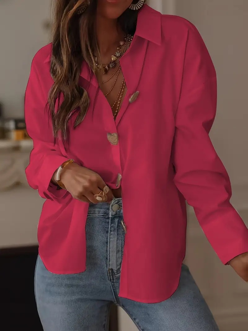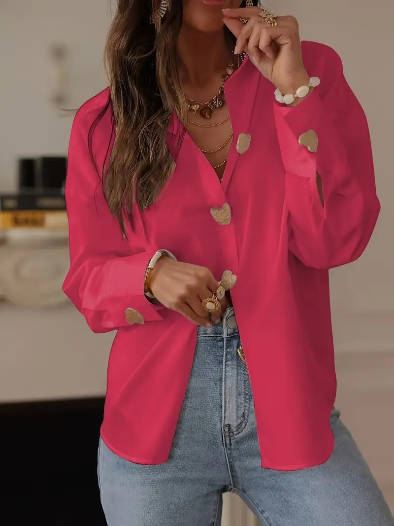 25 유럽과 미국의 국경 간 대외 무역 여성 의류 우아한 기질 통근 다용도 러브 싱글 브레스트 셔츠 셔츠 긴팔 탑