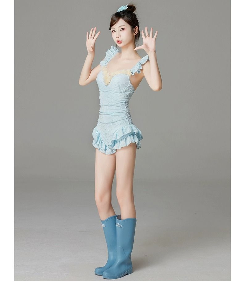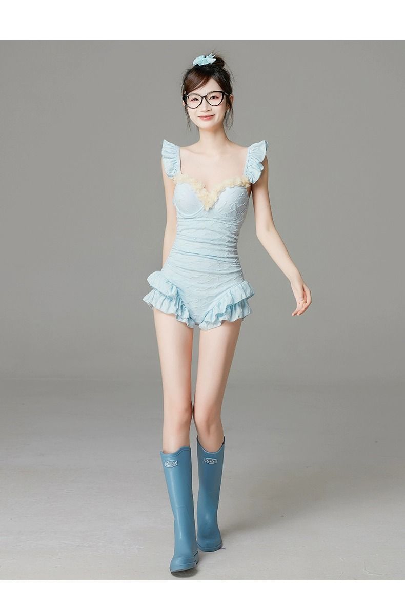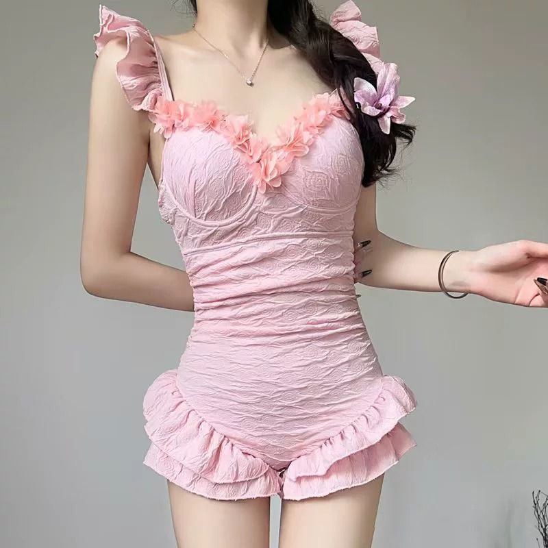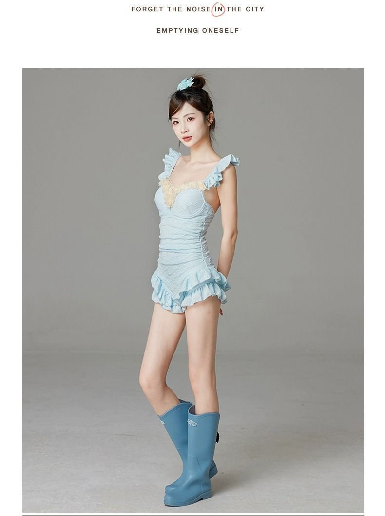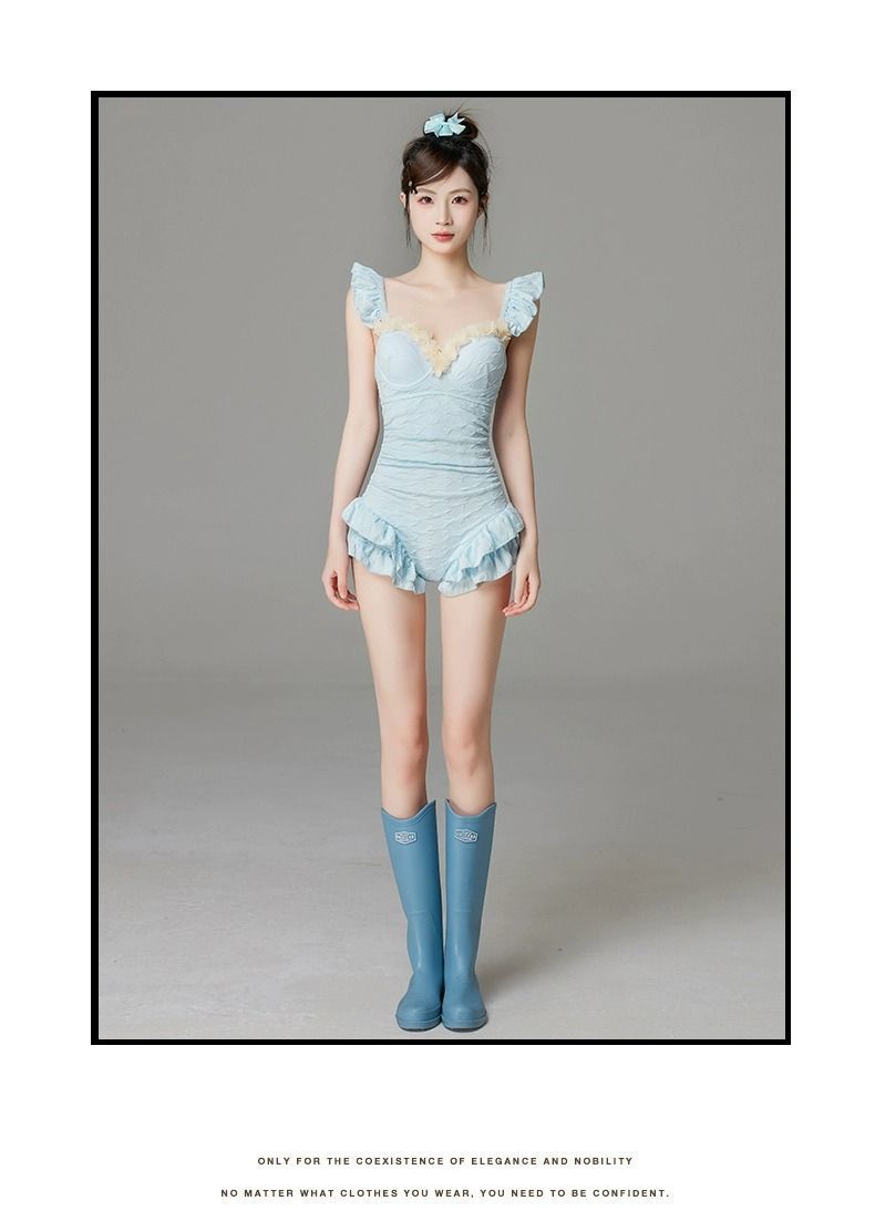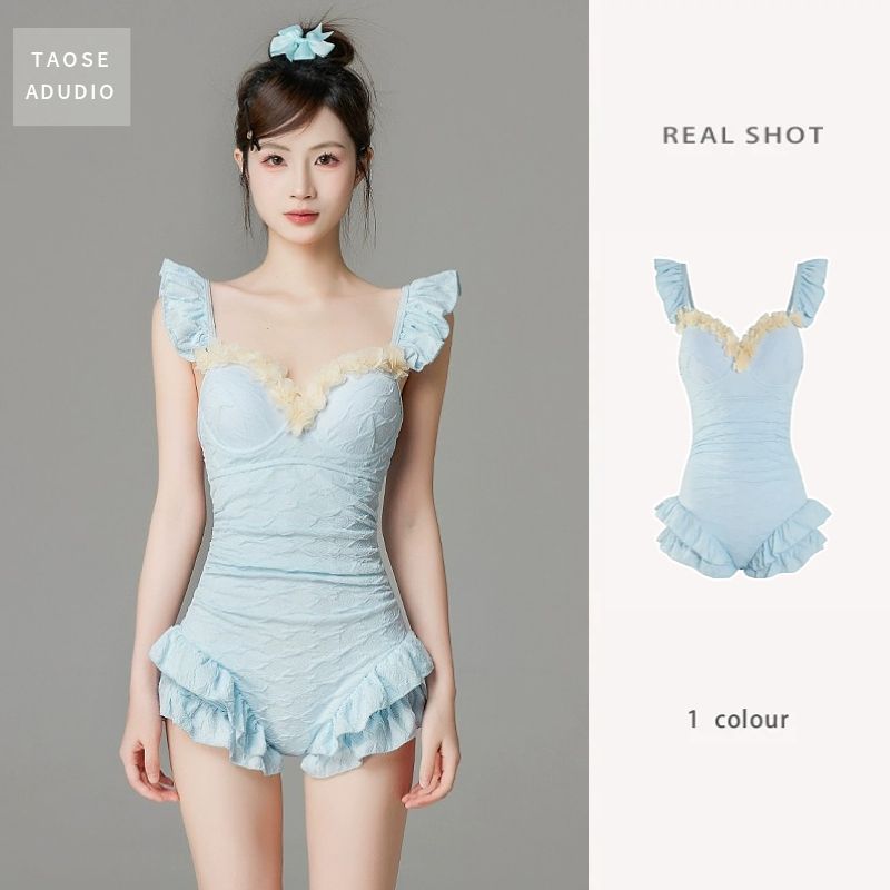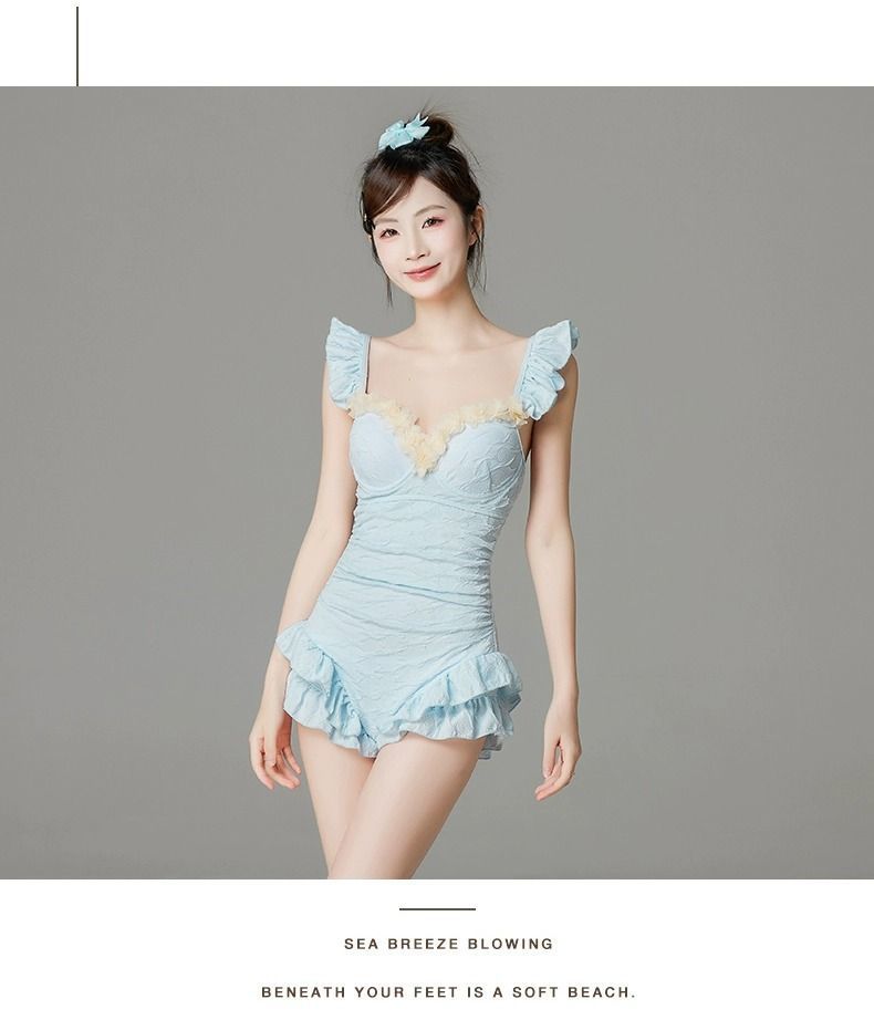 2025년 신형 여성용 원피스 수영복, 보수적인 복서 프릴, 순수한 섹시 스타일, 살을 커버하고 날씬해 보이는 온천 수영복
