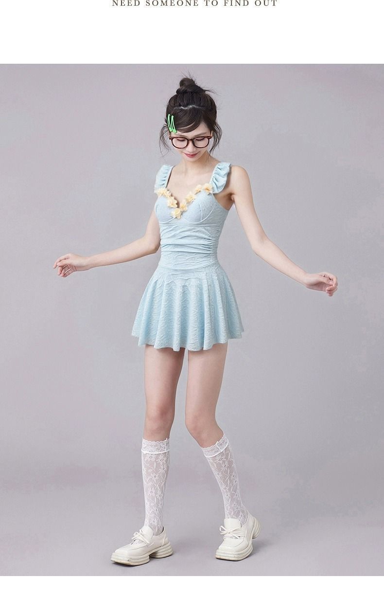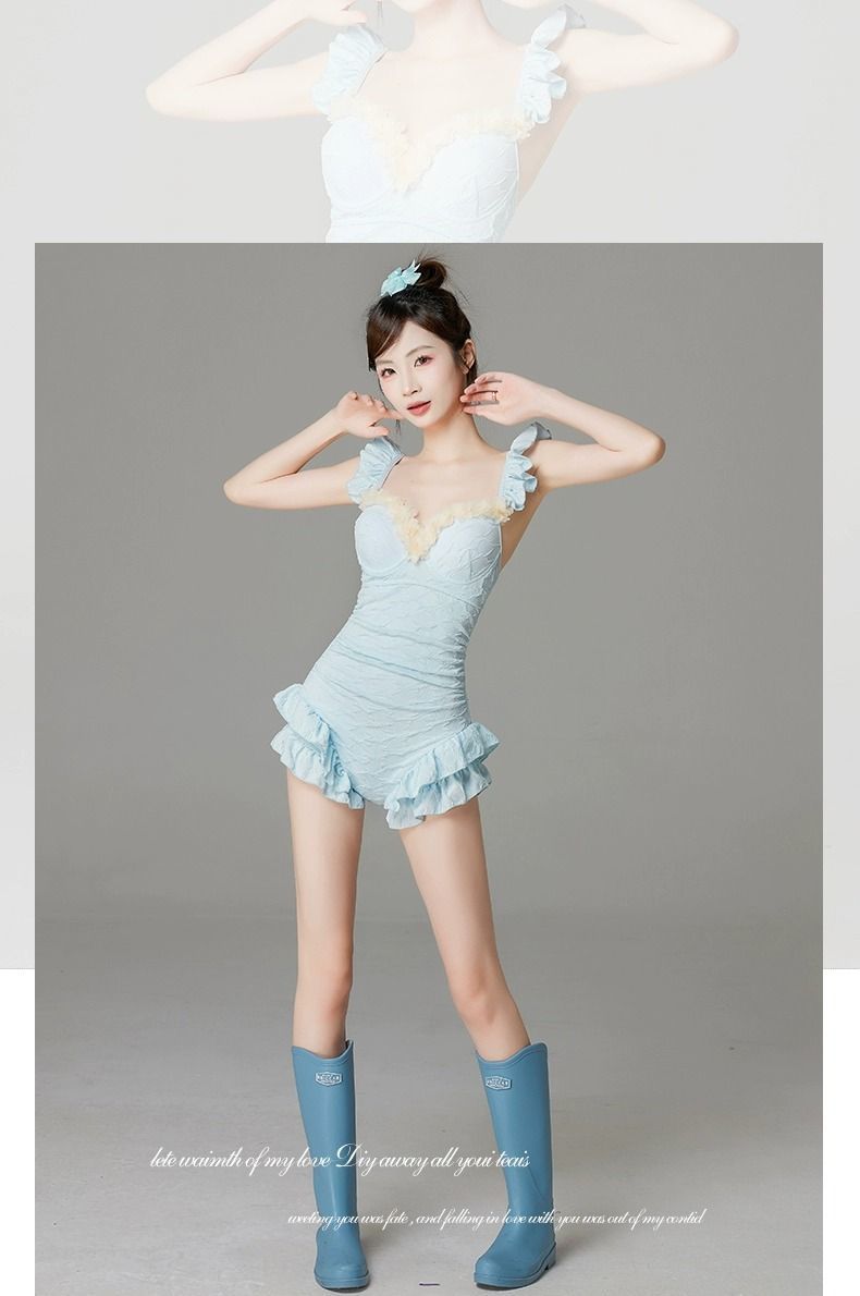 2025년 신형 여성용 원피스 수영복, 보수적인 복서 프릴, 순수한 섹시 스타일, 살을 커버하고 날씬해 보이는 온천 수영복스토어 가기