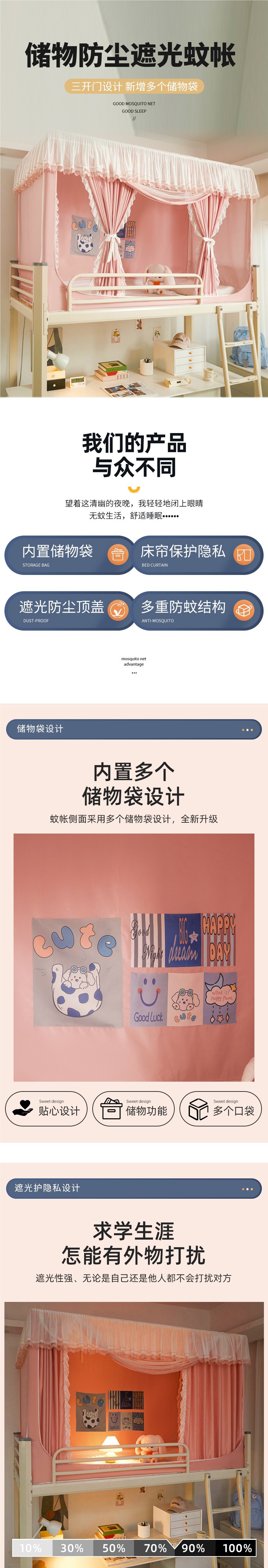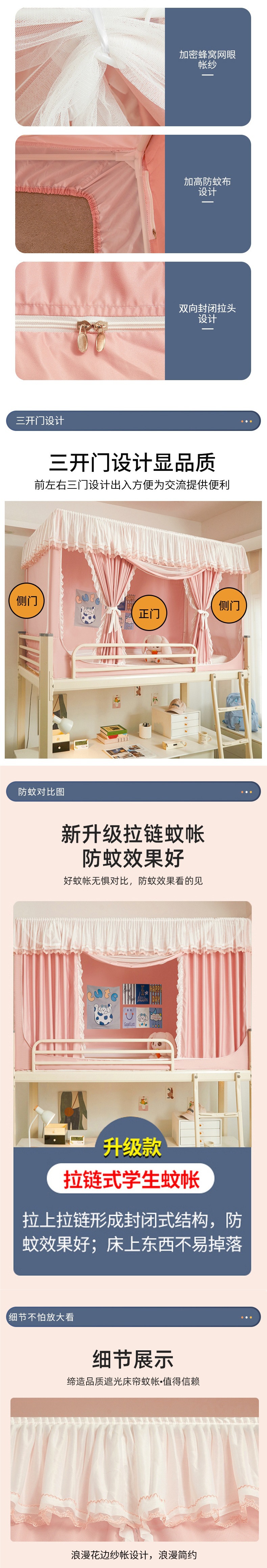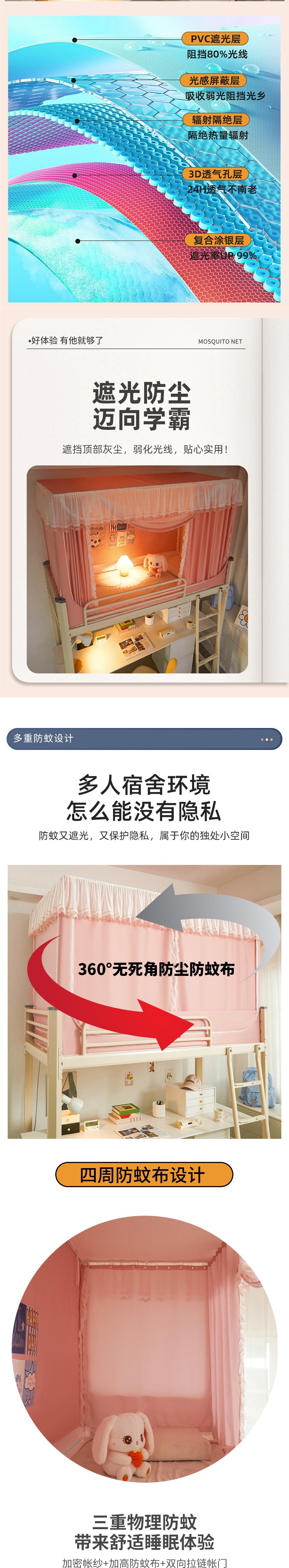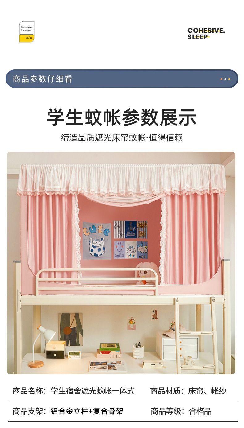 공주풍 무코팅 침대커튼, 여학생 기숙사용 모기장, 올인원 기숙사 이층침대, 작고 산뜻한 암막 침대커튼스토어 가기