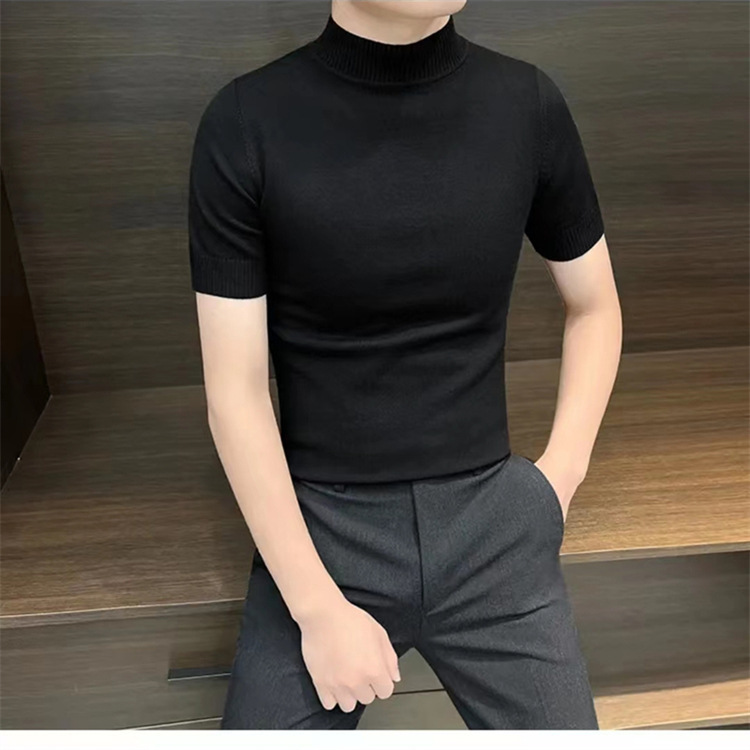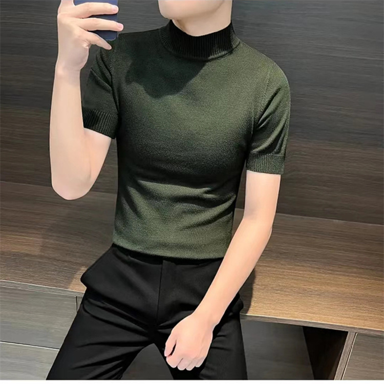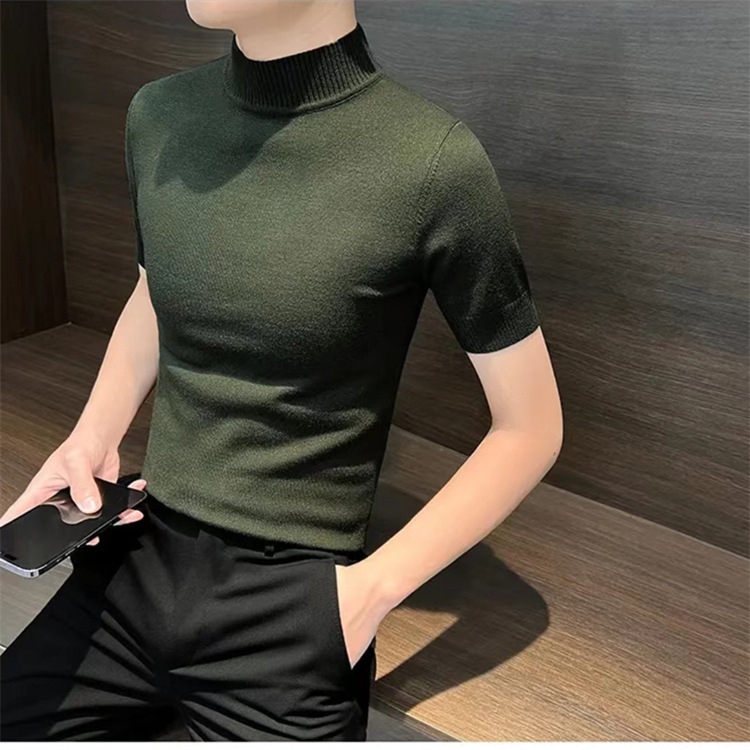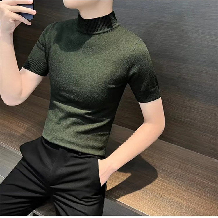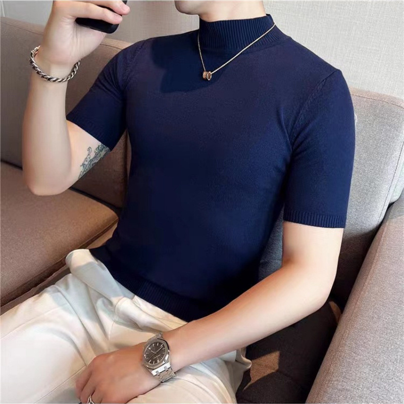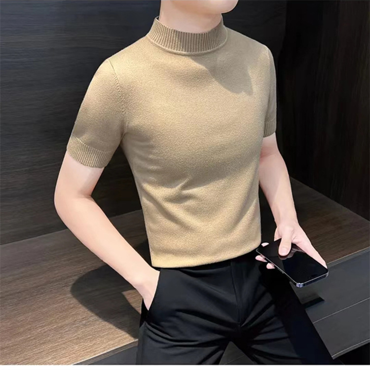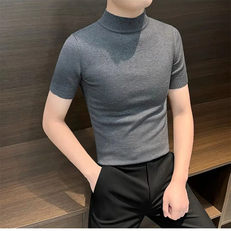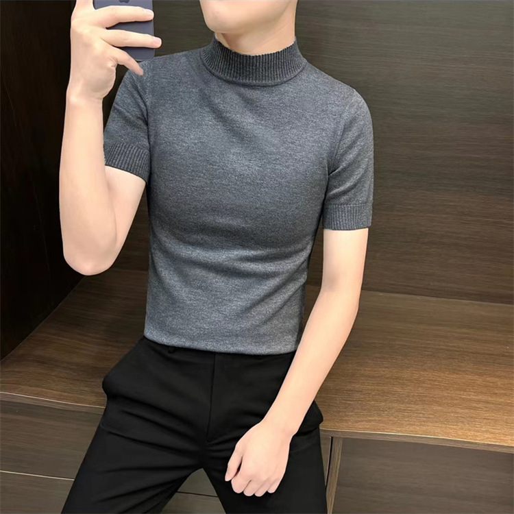 남성용 하프 터틀넥 반팔 스웨터, 2026년 봄/가을 신상, 고급스러운 느낌의 이너웨어, 중간 칼라 니트 베이스 레이어 남성용