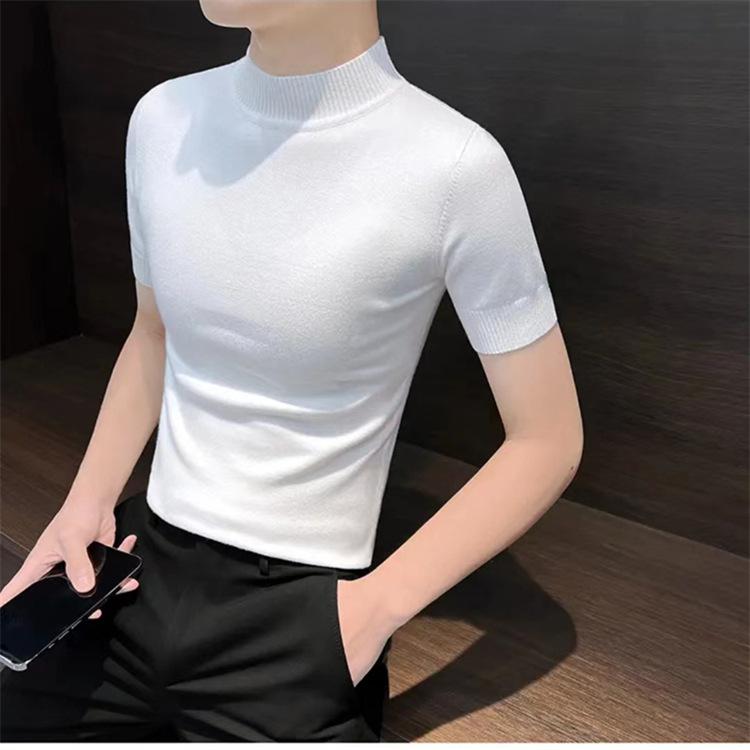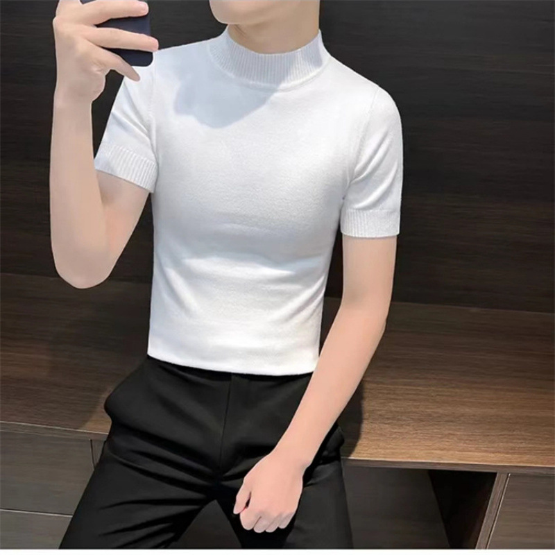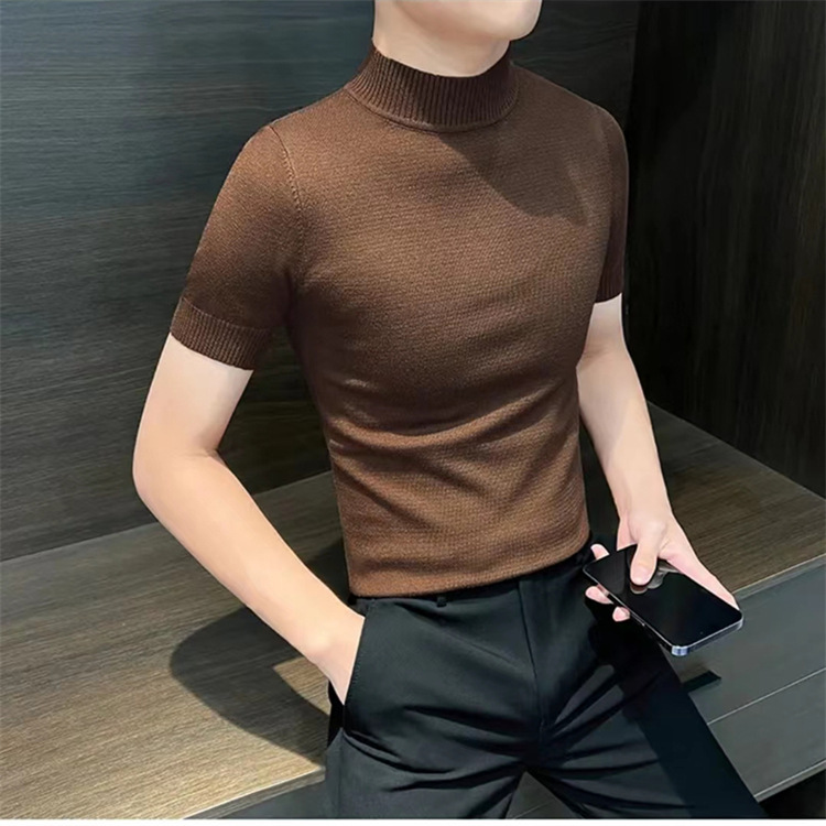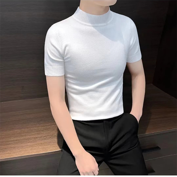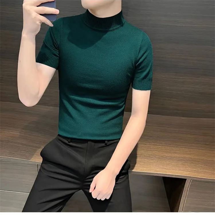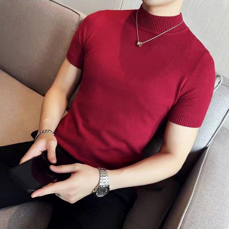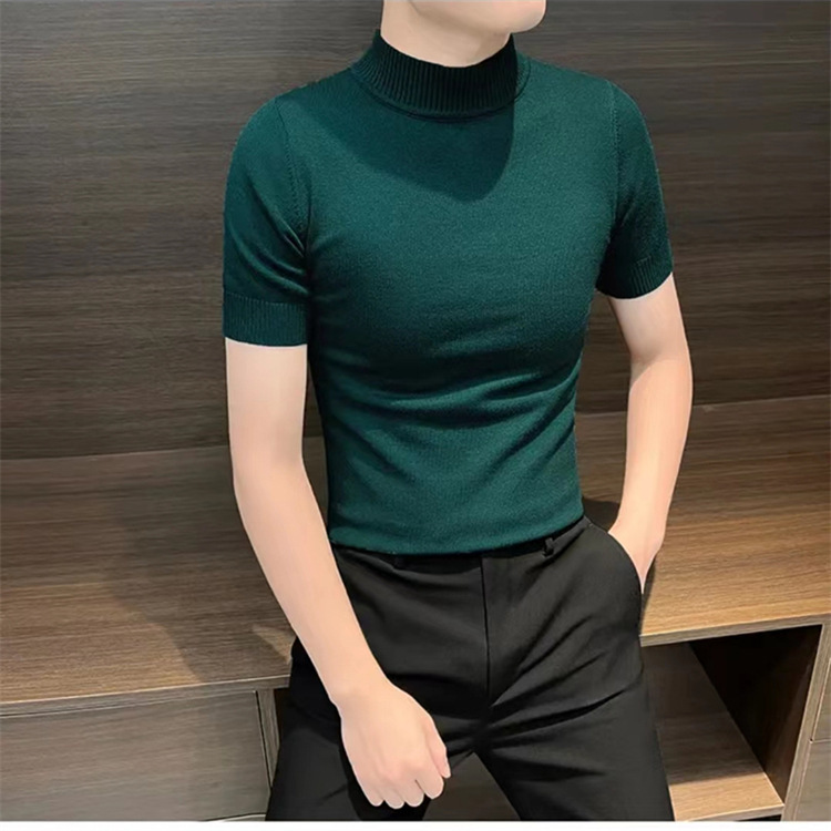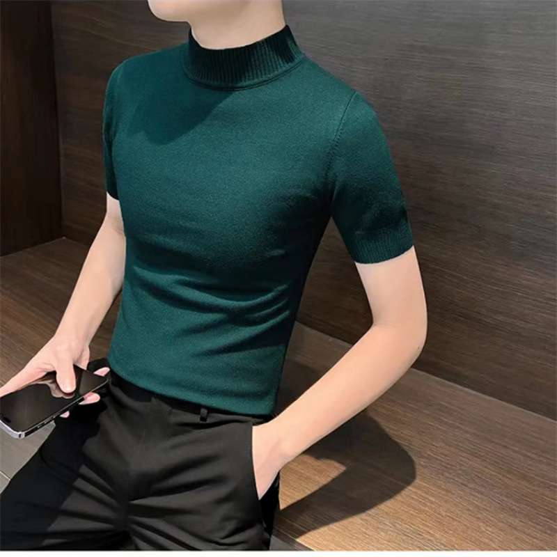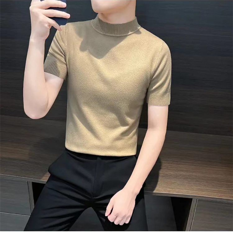 남성용 하프 터틀넥 반팔 스웨터, 2026년 봄/가을 신상, 고급스러운 느낌의 이너웨어, 중간 칼라 니트 베이스 레이어 남성용