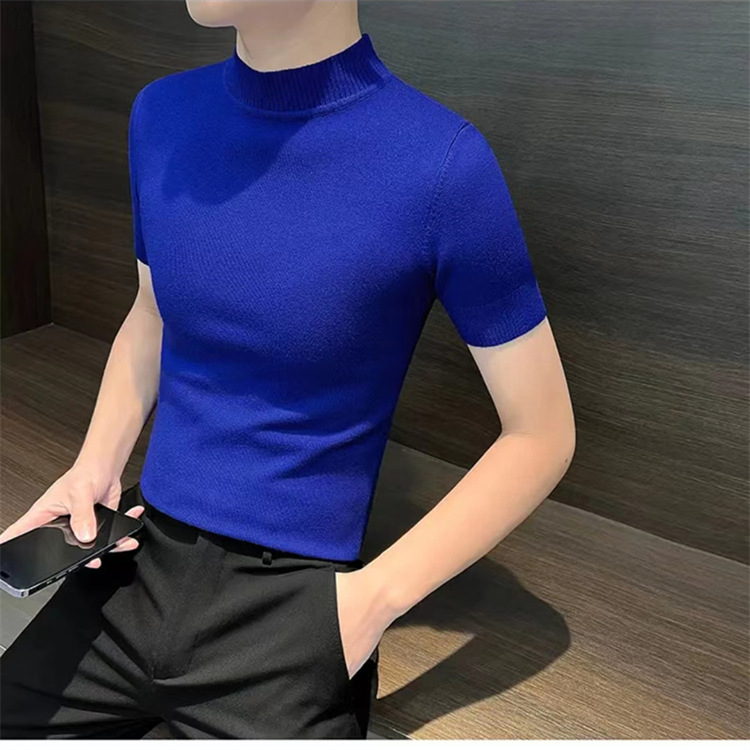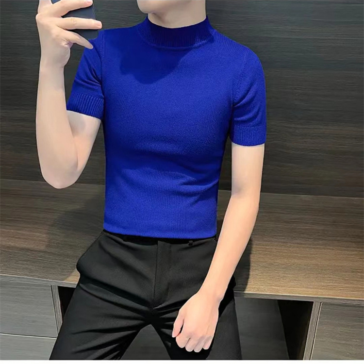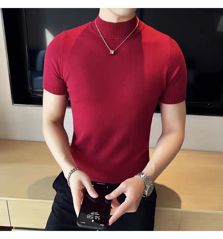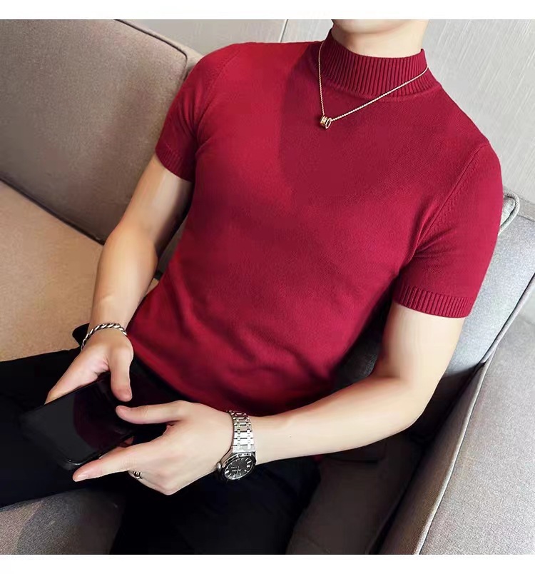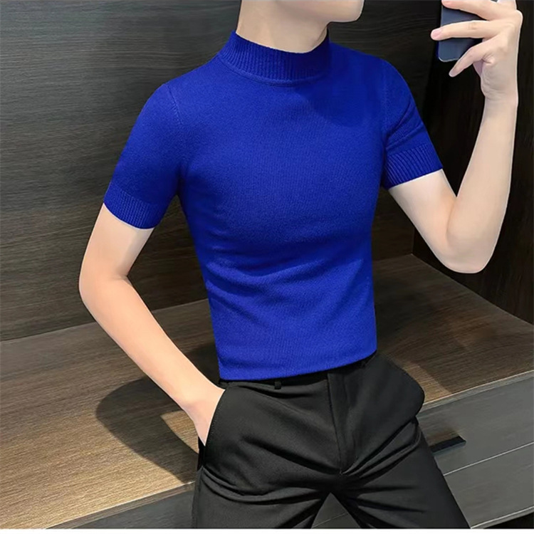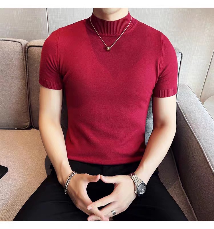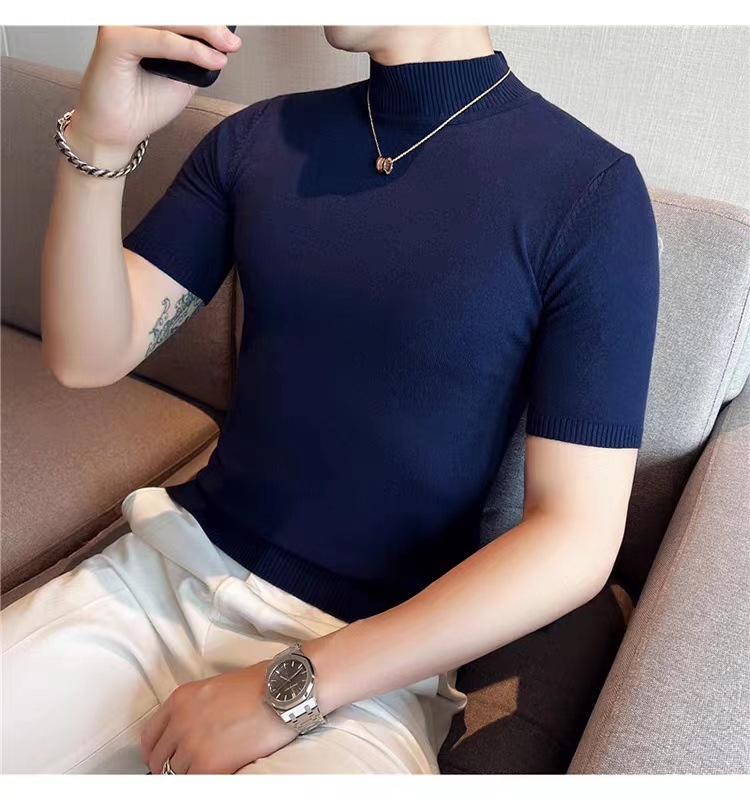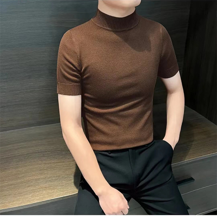 남성용 하프 터틀넥 반팔 스웨터, 2026년 봄/가을 신상, 고급스러운 느낌의 이너웨어, 중간 칼라 니트 베이스 레이어 남성용