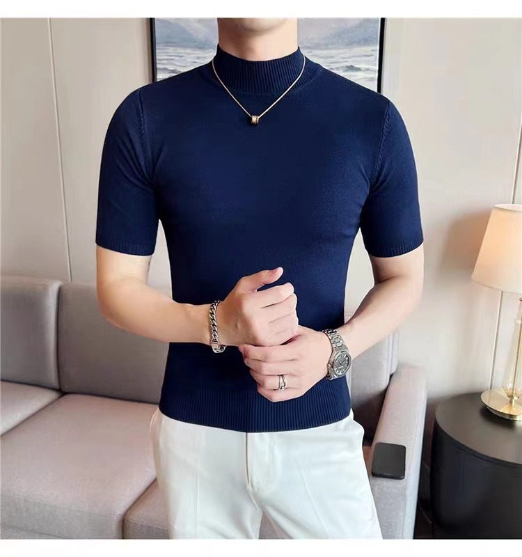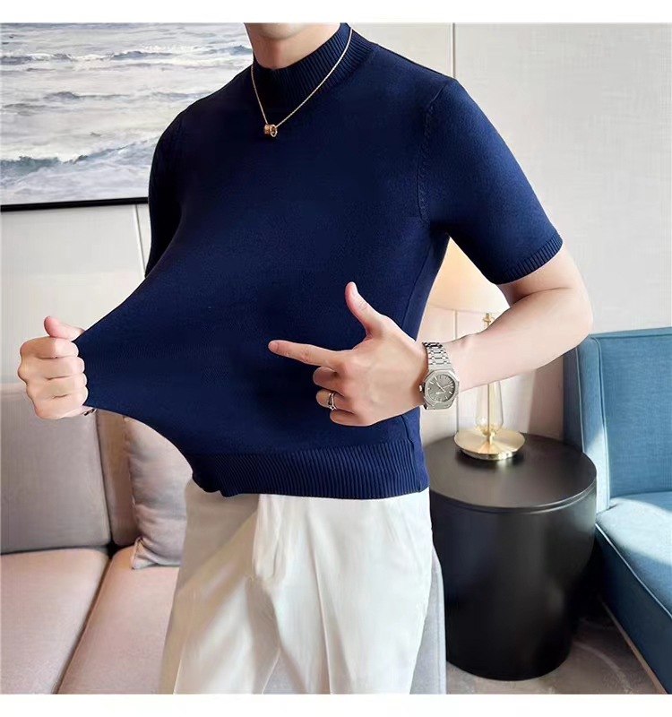 남성용 하프 터틀넥 반팔 스웨터, 2026년 봄/가을 신상, 고급스러운 느낌의 이너웨어, 중간 칼라 니트 베이스 레이어 남성용스토어 가기