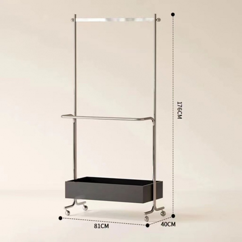 보관 상자가있는 Foshan 인터넷 연예인 스테인레스 스틸 코트 랙 이동식 예술적 옷 걸이 홈 침실 옷 걸이 바닥 스탠딩