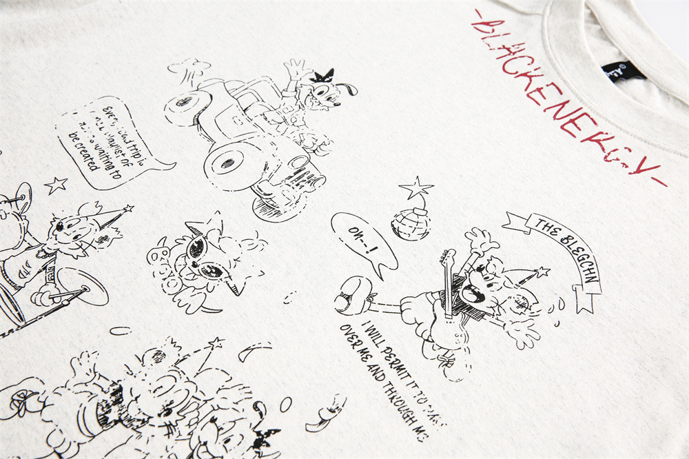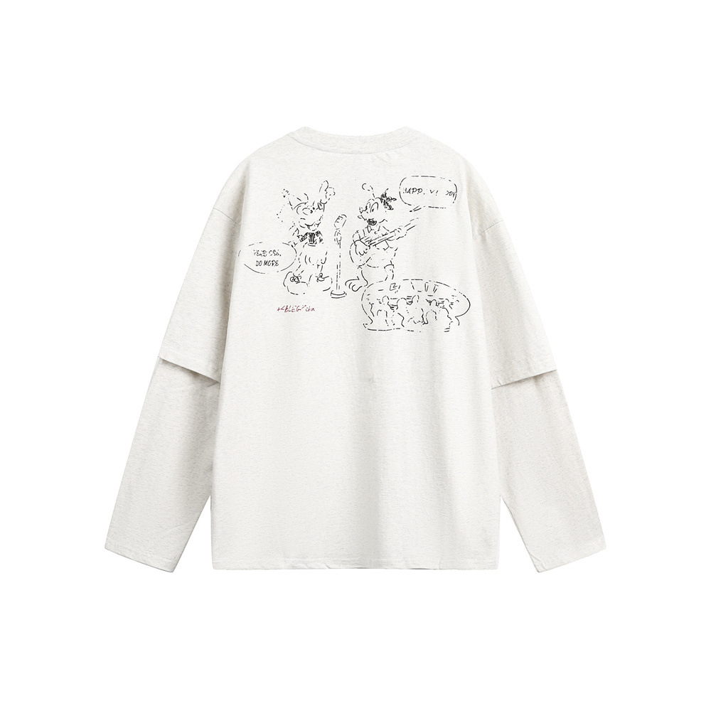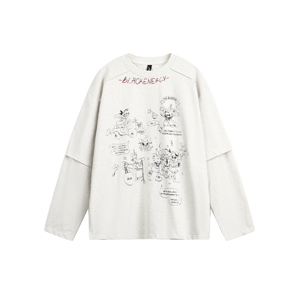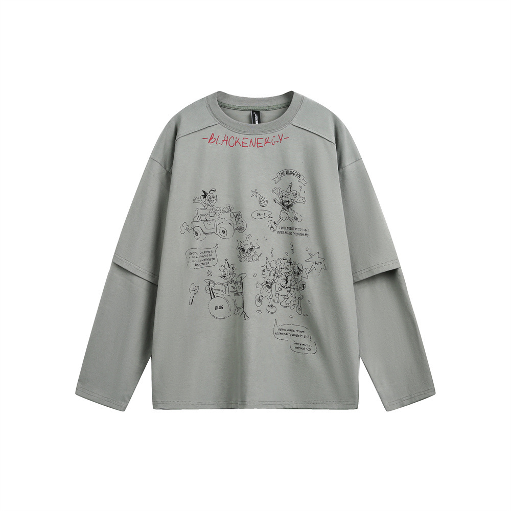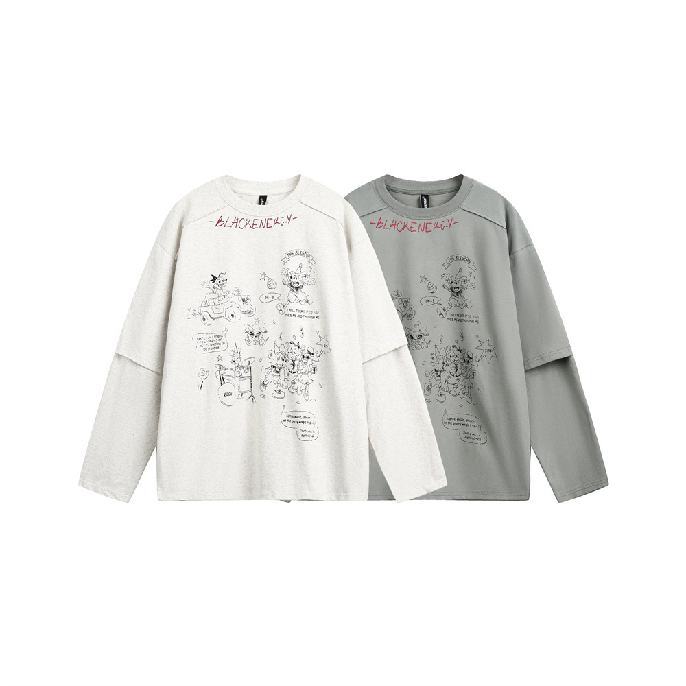유럽과 미국의 복고풍 남성 긴팔 티셔츠 2025 새로운 라운드 넥 만화 프린트 트렌디 브랜드 루즈하고 다재다능한 새 상의