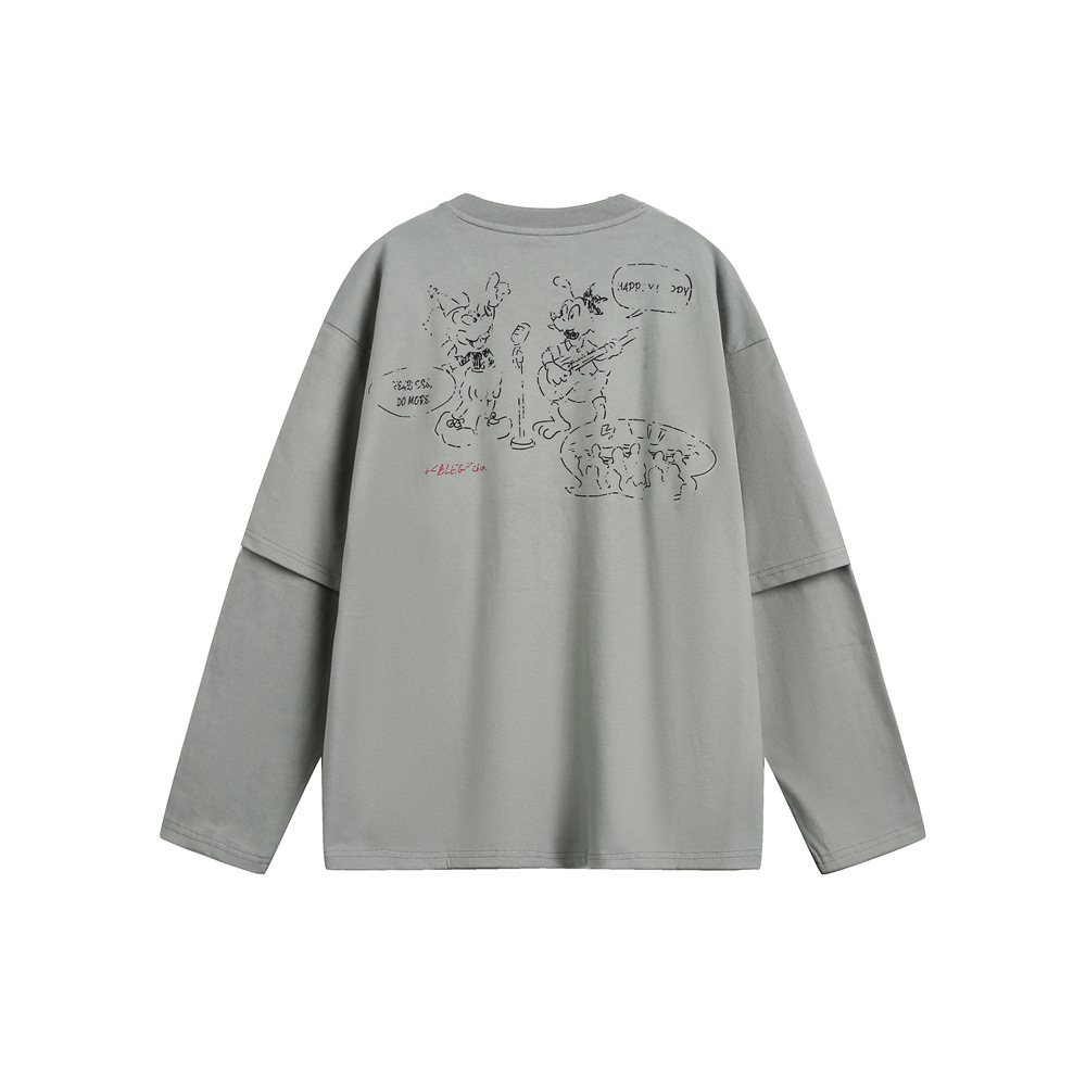 유럽과 미국의 복고풍 남성 긴팔 티셔츠 2025 새로운 라운드 넥 만화 프린트 트렌디 브랜드 루즈하고 다재다능한 새 상의스토어 가기