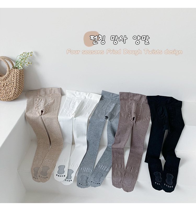 여아 레깅스 봄, 가을 다용도 아우터 면 세로 줄무늬 발 미끄럼 방지 아동 팬티 스타킹 흰색 댄스 양말