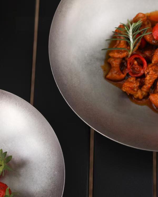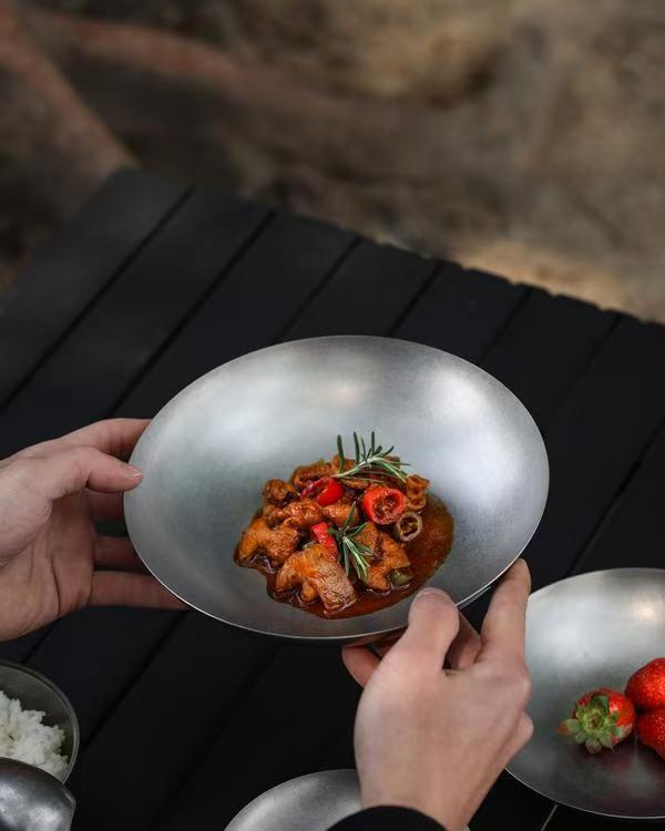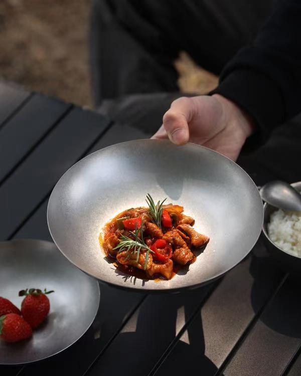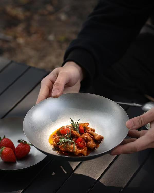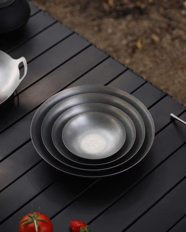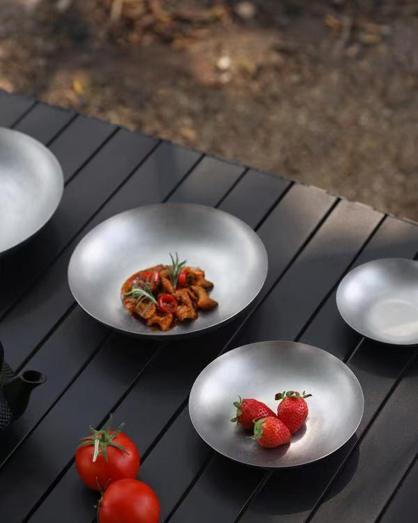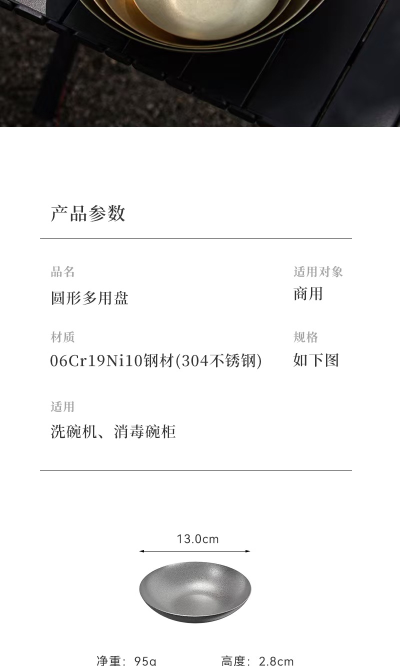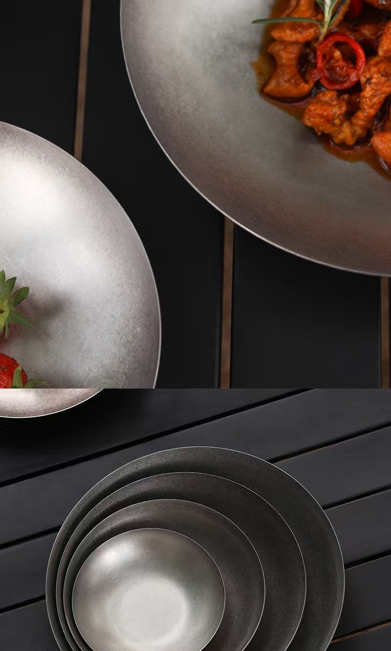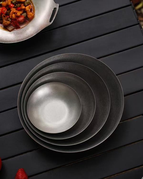 레트로 304 스테인레스 스틸 접시 호텔 캠핑 라운드 다목적 접시 차가운 요리 냉면 접시 저녁 식사 접시 전골 레스토랑 깊은 접시