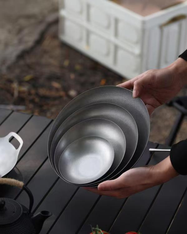 레트로 304 스테인레스 스틸 접시 호텔 캠핑 라운드 다목적 접시 차가운 요리 냉면 접시 저녁 식사 접시 전골 레스토랑 깊은 접시스토어 가기