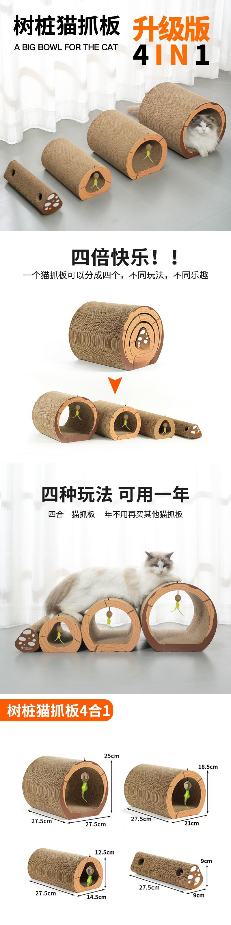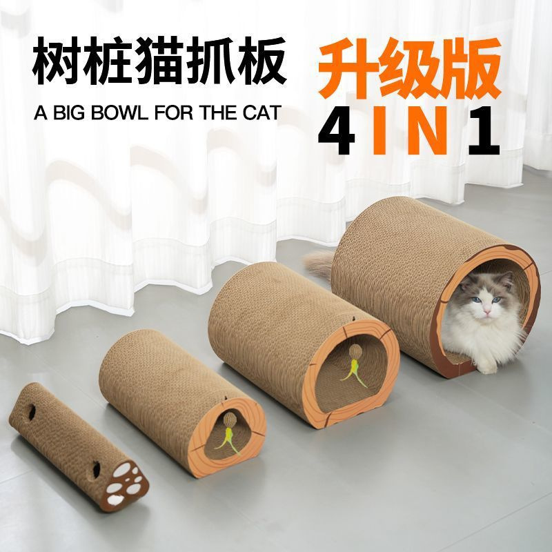 • [업그레이드를 위한 강력 추천 모델] 4-in-1 나무 그루터기 고양이 긁는 보드 둥지