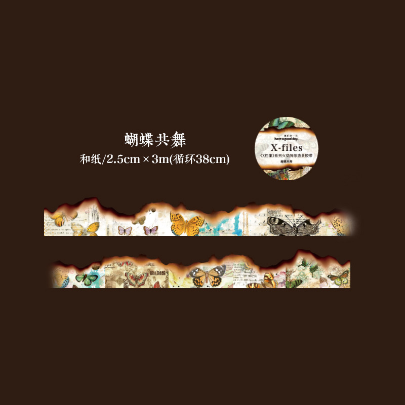 X 파일 시리즈 아름다운 날 조경 테이프 복고풍 불 특수 모양 DIY 핸드북 기본 스티커 8 스타일