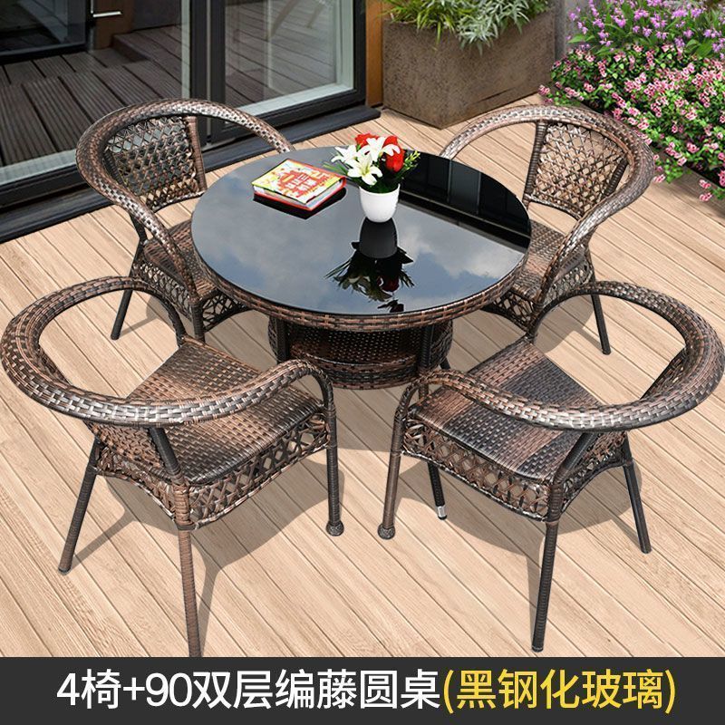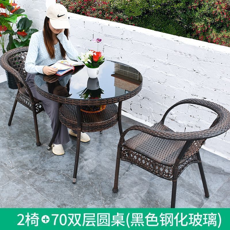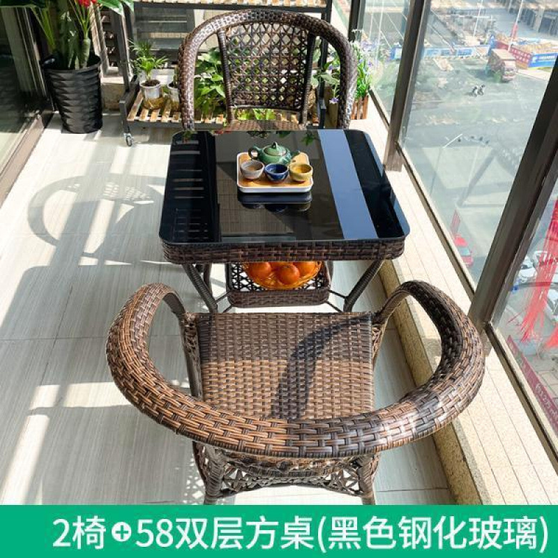 야외 발코니 레저 테이블과 의자, 안뜰 등나무 의자 3종 세트, 야외 테라스 의자, 등나무 의자, 작은 커피 테이블 조합