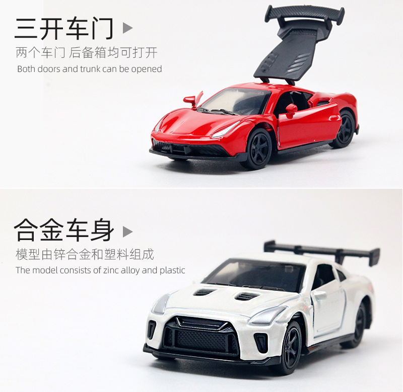 뜨거운 판매 합금 자동차 모델 1:64 미니 자동차 합금 스포츠카 모델 3 도어 풀백 소년 장난감 도매