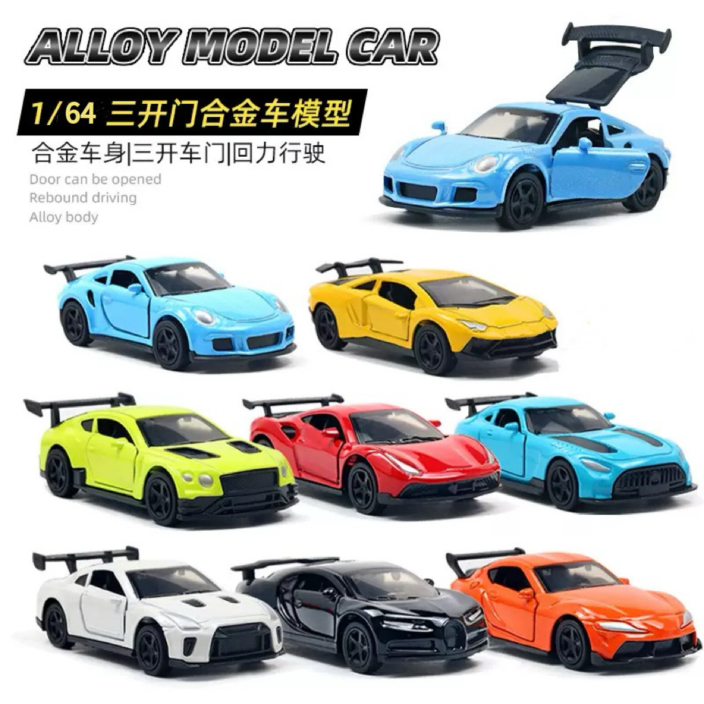 뜨거운 판매 합금 자동차 모델 1:64 미니 자동차 합금 스포츠카 모델 3 도어 풀백 소년 장난감 도매스토어 가기