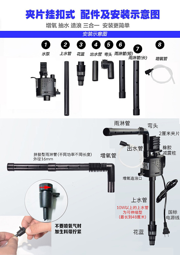 Haisibao 수조 워터 펌프 필터 3-in-one 산소화 수중 펌프 자동 상부 순환 다기능 소형 워터 펌프스토어 가기