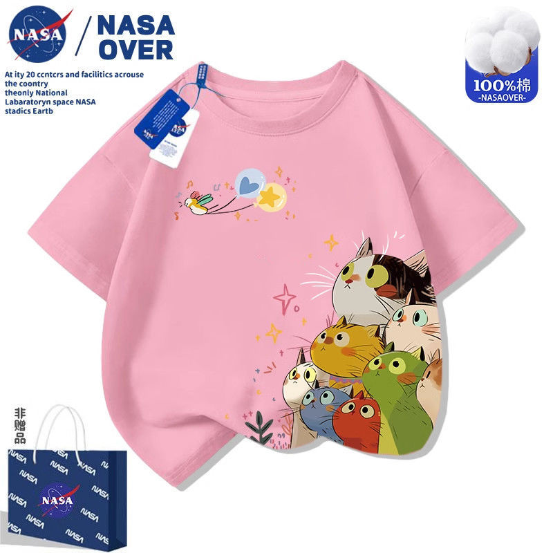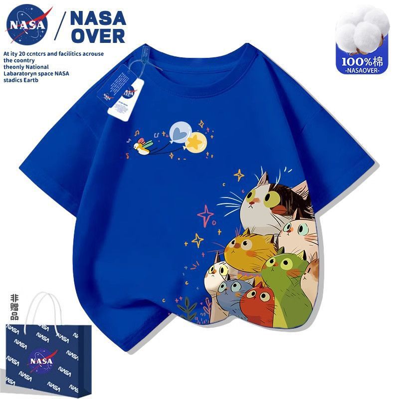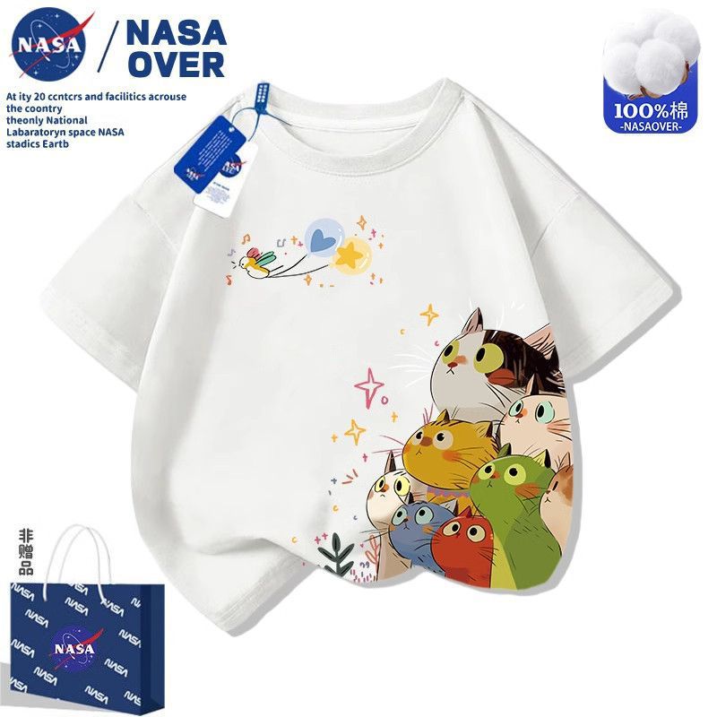 NASA 어린이 고양이 반팔 티셔츠 귀여운 프린트 중대형 아동복 여름 다재다능한 패션 만화 반팔 티셔츠
