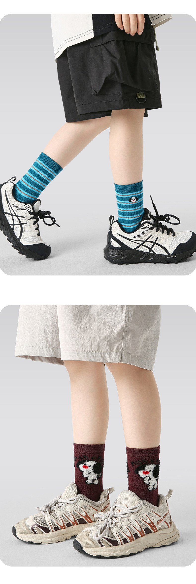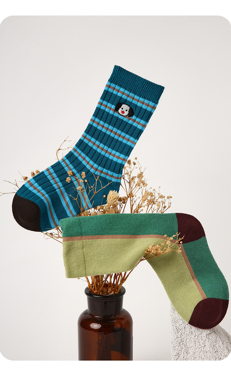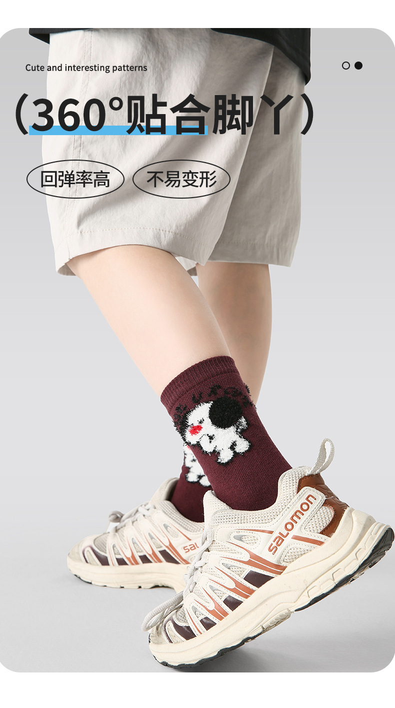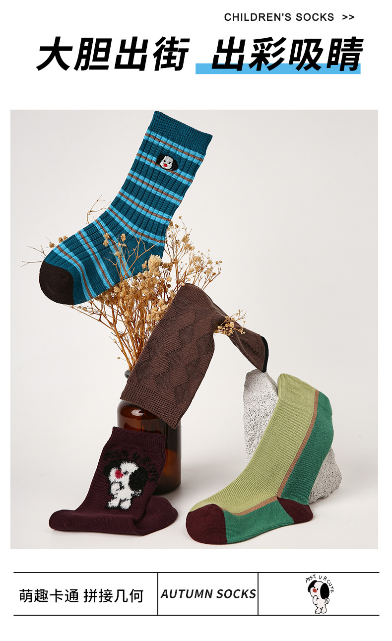 1833 어린이 양말 가을 새로운 만화 강아지 아기 중간 튜브 양말 색상 일치 스포츠 뼈없는 소년 양말면