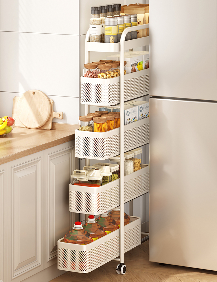 주방용 풀아웃 수납선반, 좁은 틈새선반, 서랍형 수납선반이 있는 가정용 초소형 수납선반, 이동식 스낵선반스토어 가기