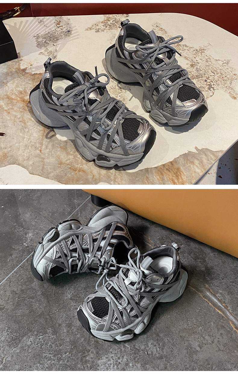 5CM 높이 증가 ~ 충격 흡수 두꺼운 밑창 메쉬 통기성 등산 파리 아빠 신발 여성 여름 야외 하이킹 운동화스토어 가기