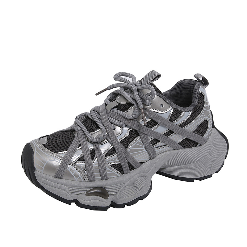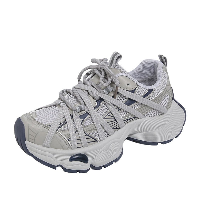 5CM 높이 증가 ~ 충격 흡수 두꺼운 밑창 메쉬 통기성 등산 파리 아빠 신발 여성 여름 야외 하이킹 운동화