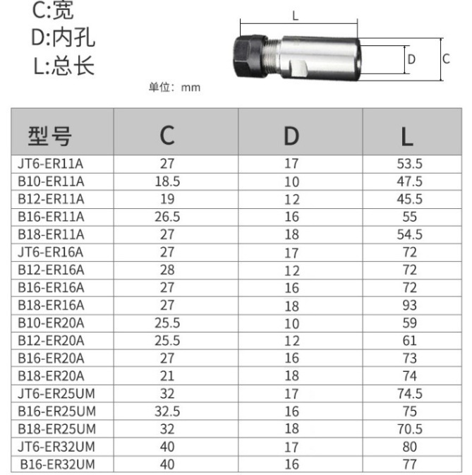고정밀 다기능 ER 척 ER20-B16ER25-B18/JT6ER32ER40-B22 플로팅 공격