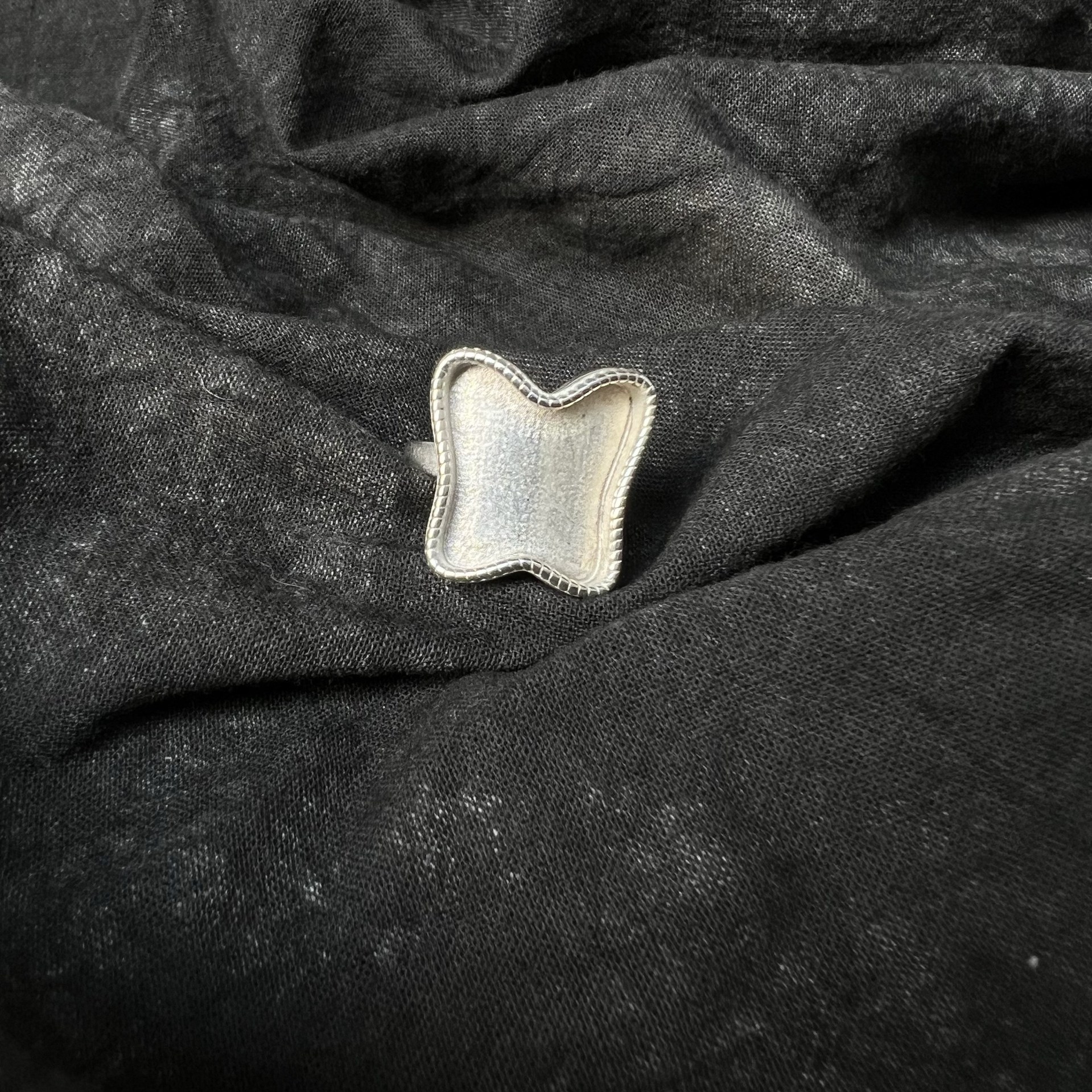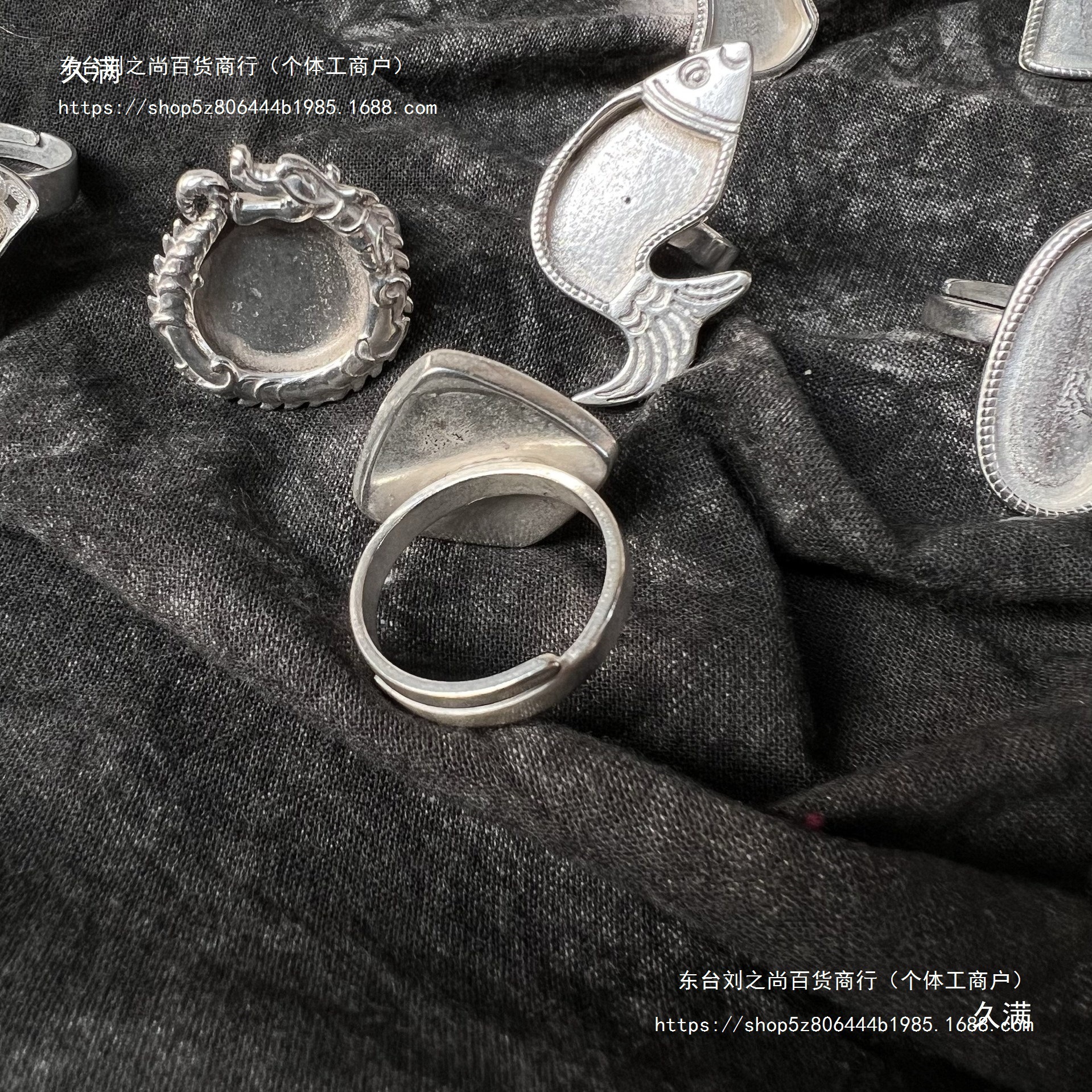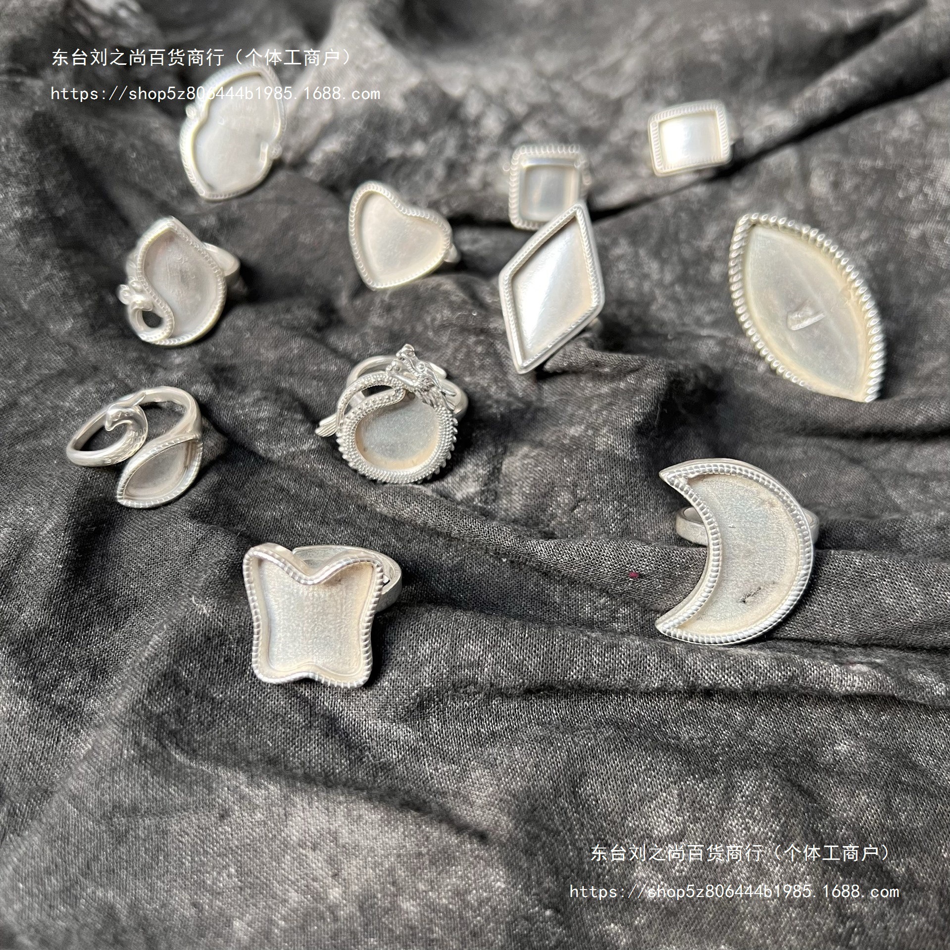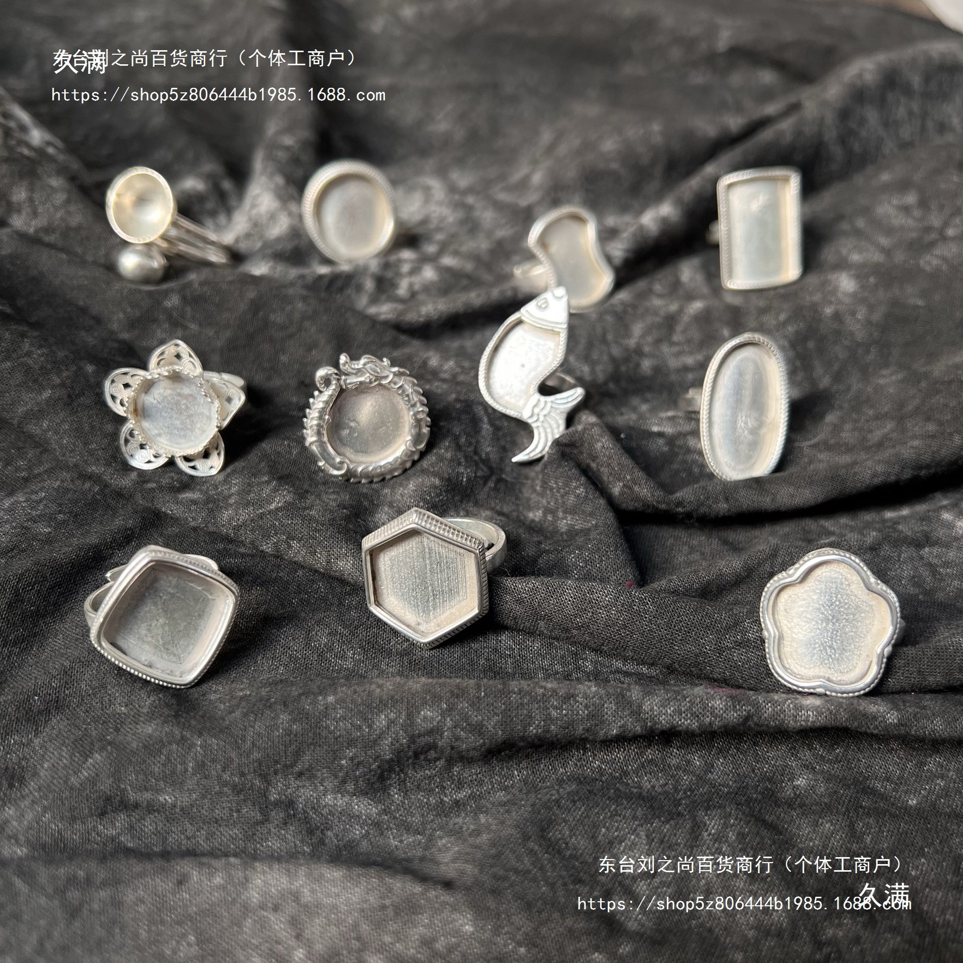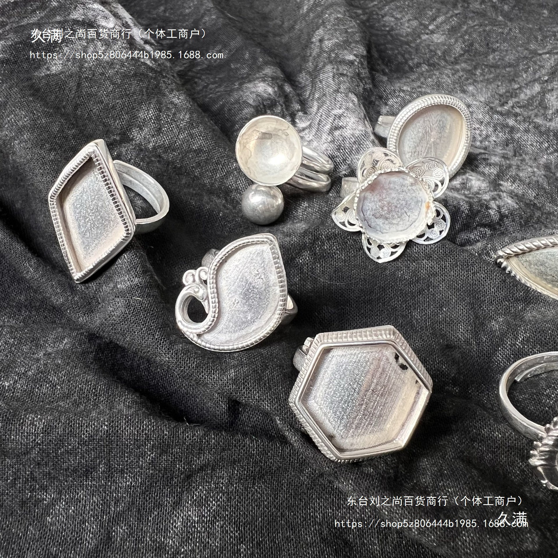 앤티크 올드 실버 반지, 에스닉 스타일, 핸드메이드 민족 은 DIY 자수, 올드 자수 반지 홀더 액세서리, 빈 벽돌
