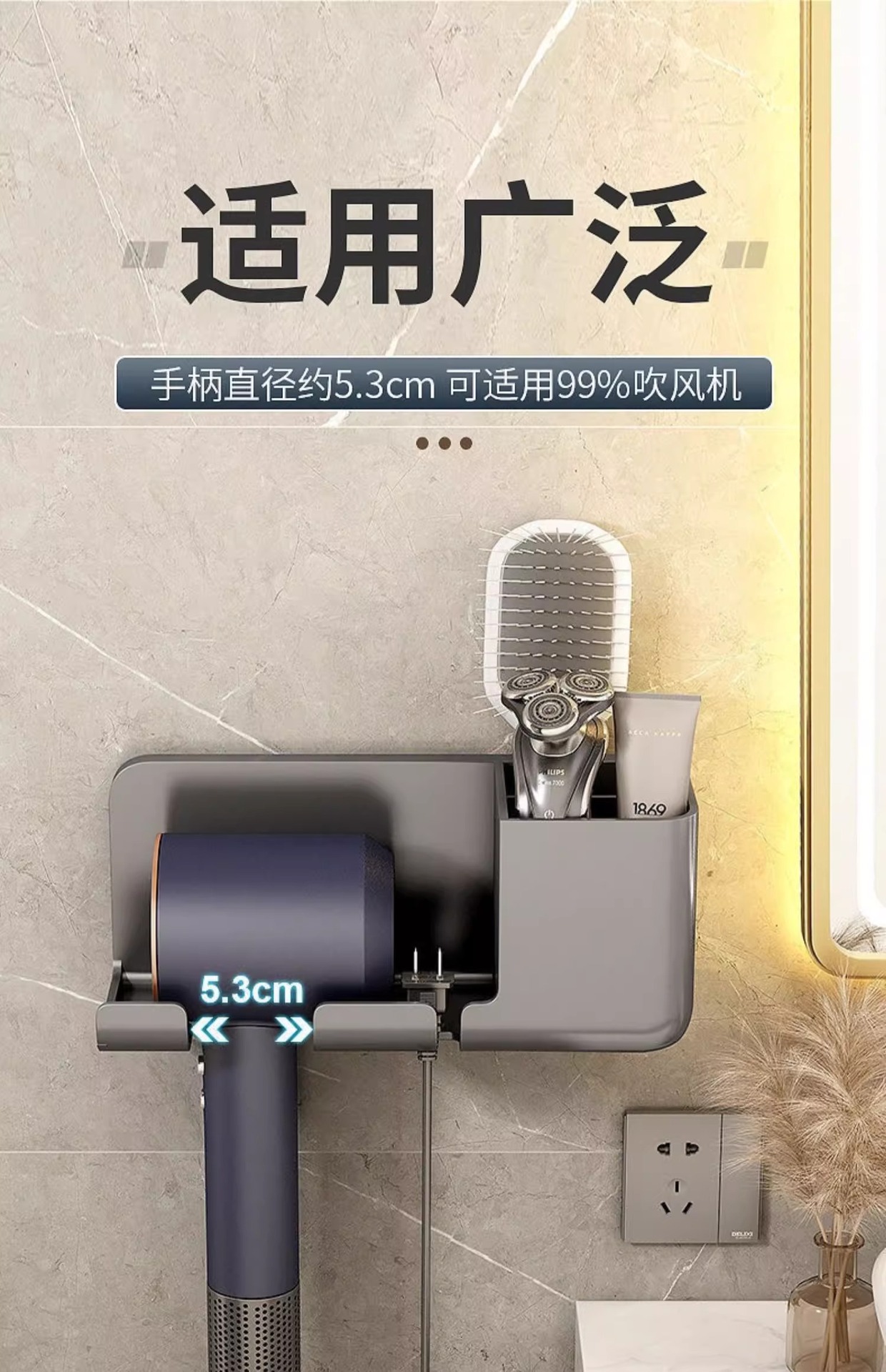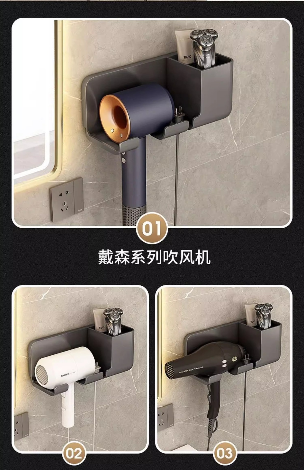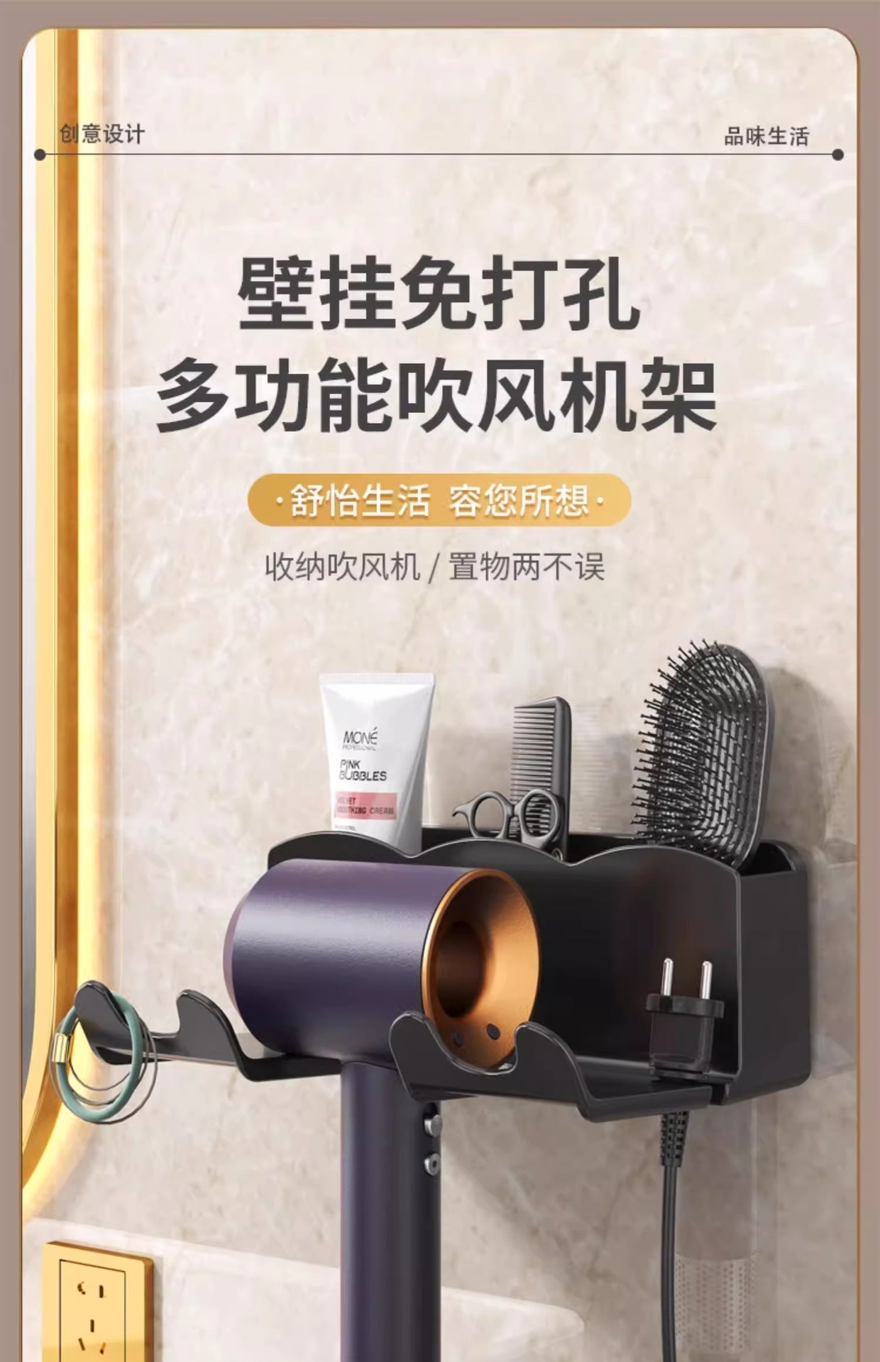 헤어드라이어 수납선반, 흡착판 수납선반, 펀치프리 욕실 헤어드라이어 걸이, 욕실 다기능 수납선반