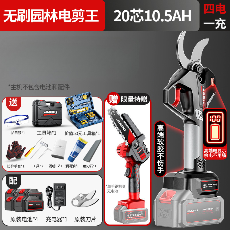 • 독일 브러시리스 정원 전기 가위 [20 코어 10.5AH] 배터리 4개, 무료 리튬 전기톱(지능형 LCD 디지털 디스플레이 포함)