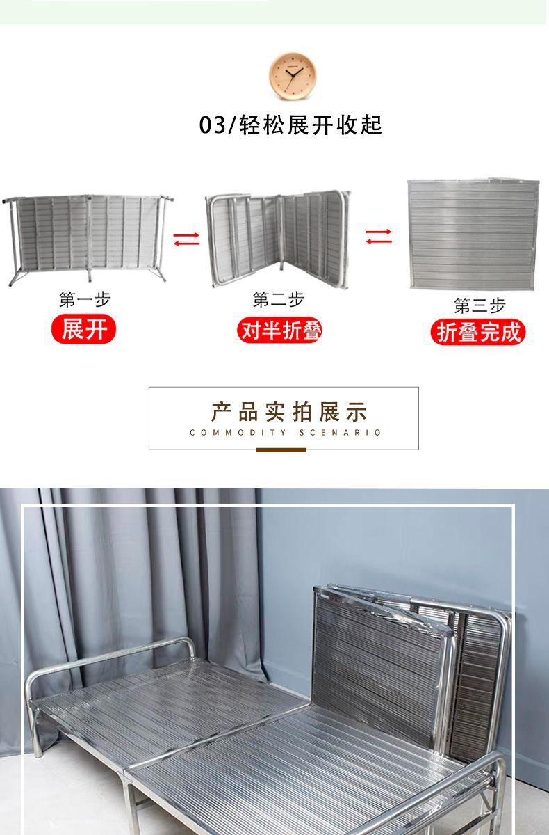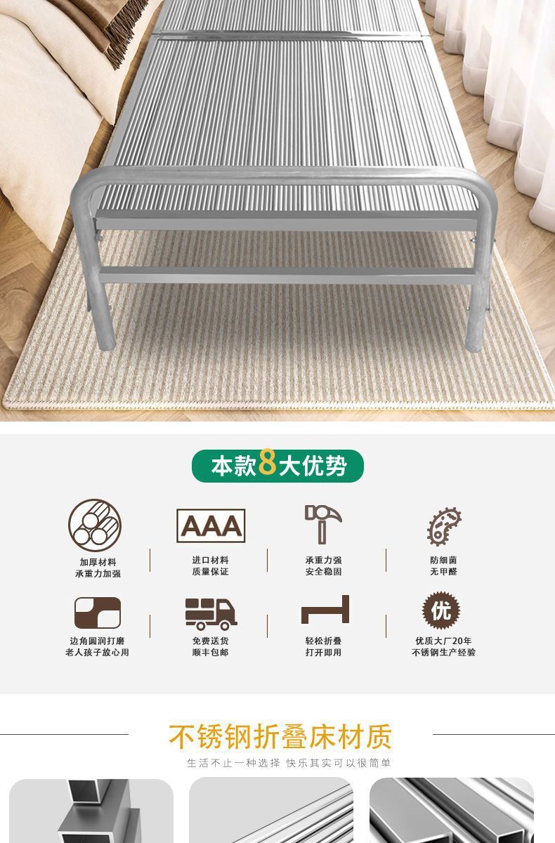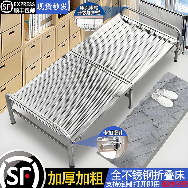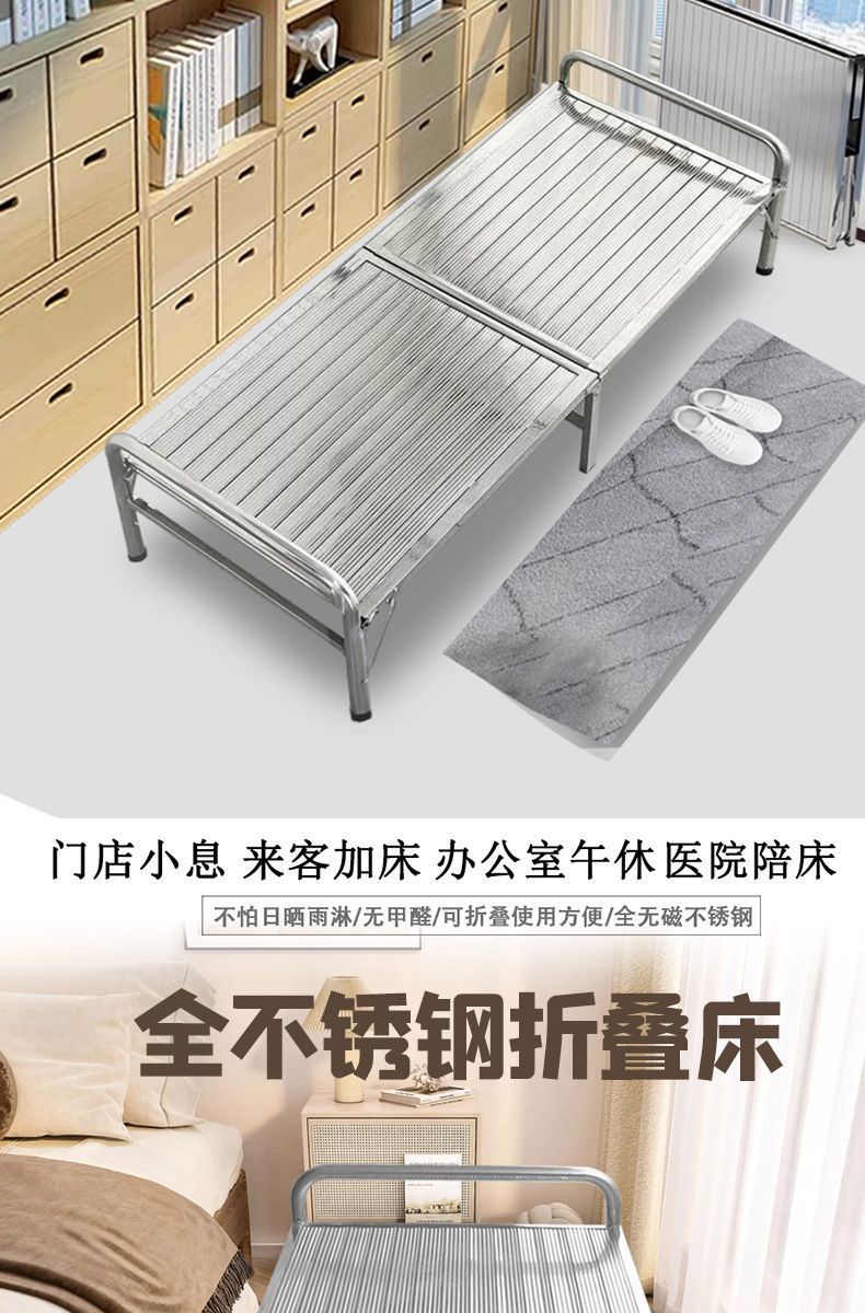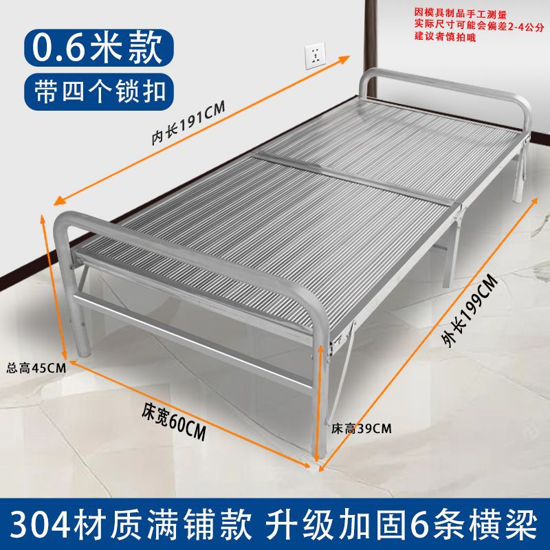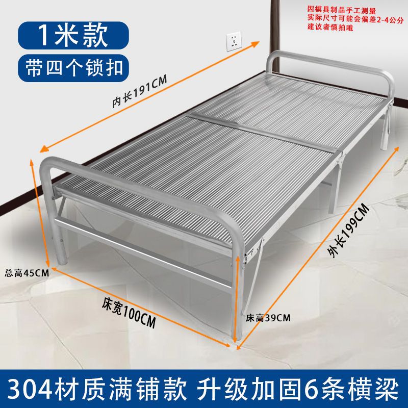 두꺼운 304 스테인레스 스틸 접이식 침대 강화 간단한 암호화 싱글 침대 휴대용 간병인 가정 점심 시간 낮잠스토어 가기