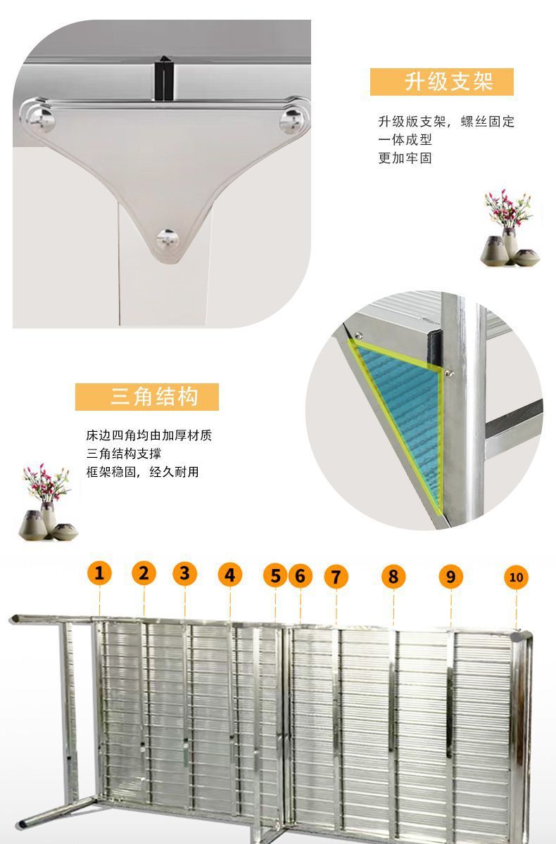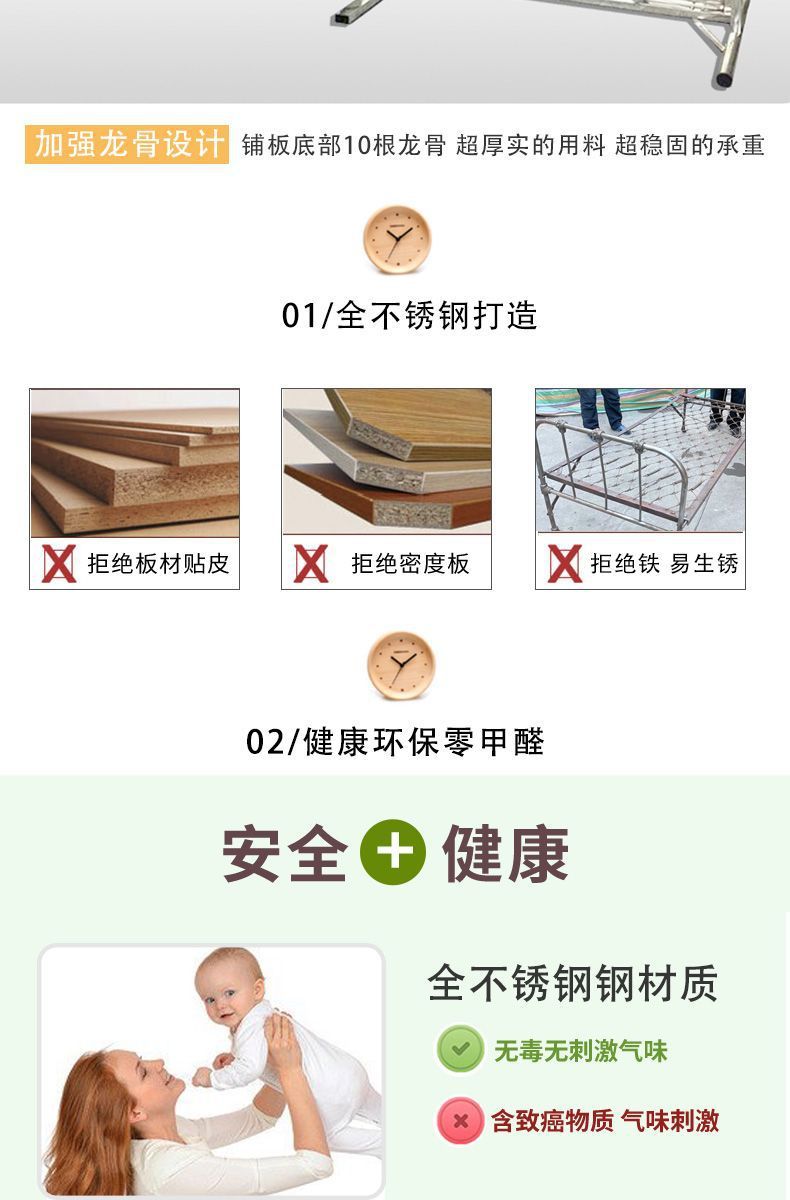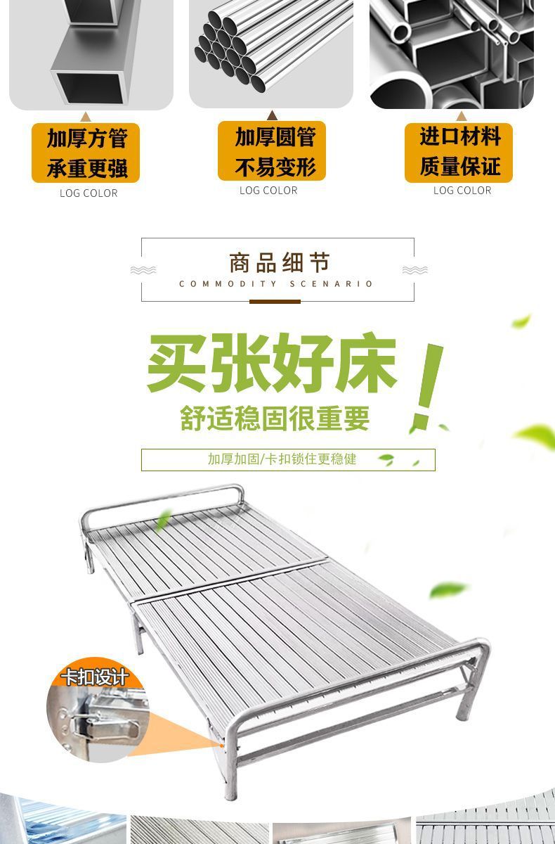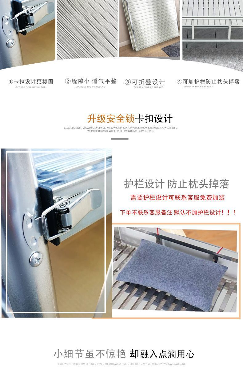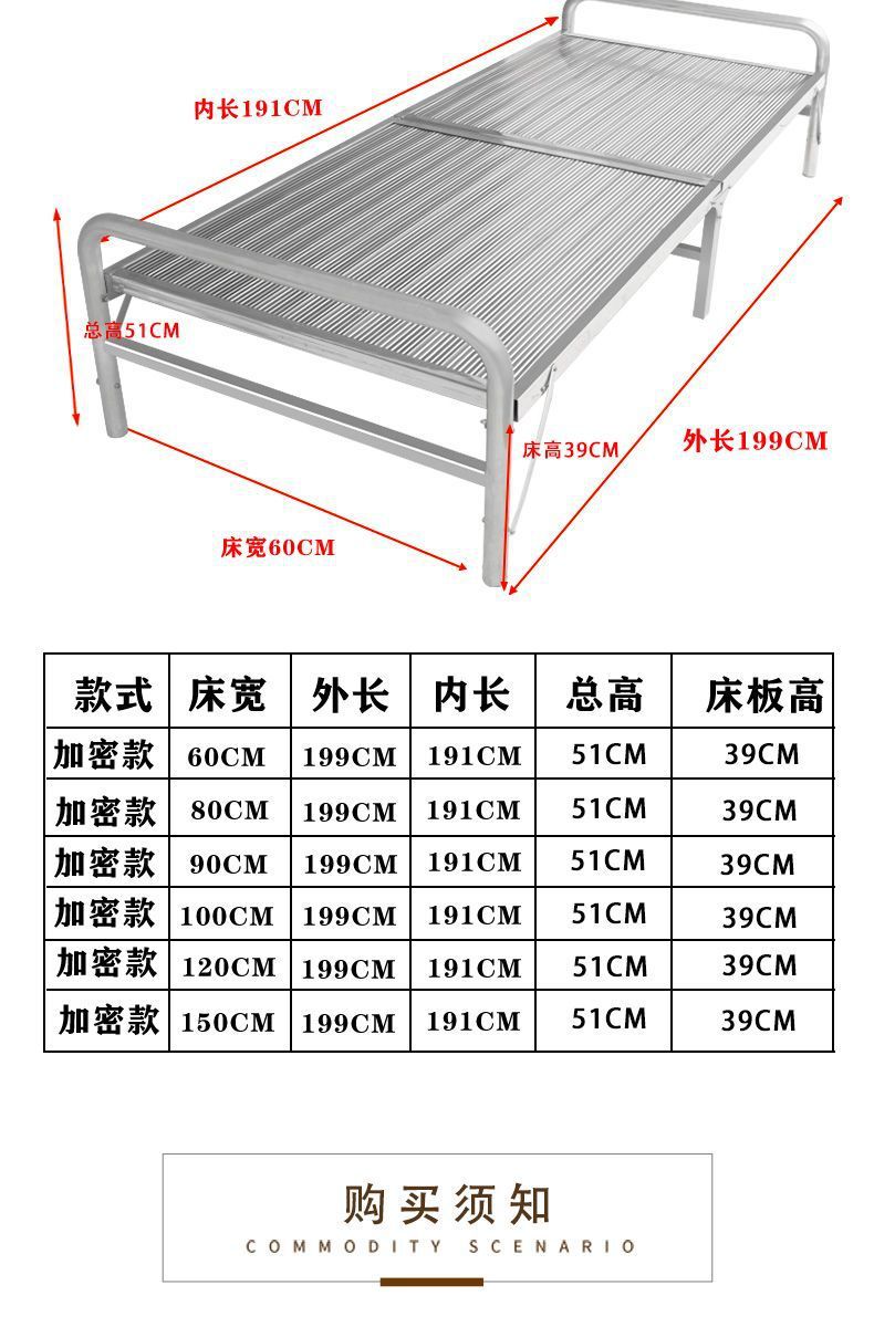 두꺼운 304 스테인레스 스틸 접이식 침대 강화 간단한 암호화 싱글 침대 휴대용 간병인 가정 점심 시간 낮잠스토어 가기