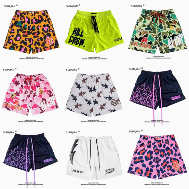 대외 무역 국경 간 미국 유행 브랜드 스트리트 농구 반바지 남성용 루즈 캐주얼 쿼터 바지 러닝 스포츠 속건성 및 통기성