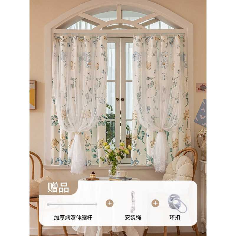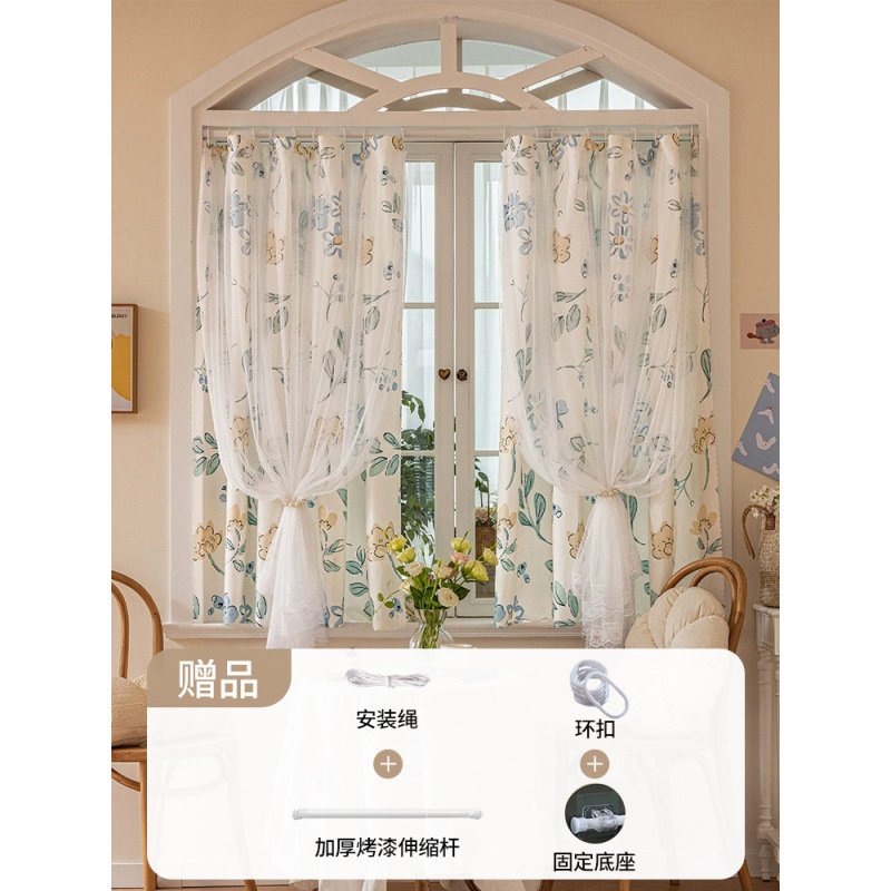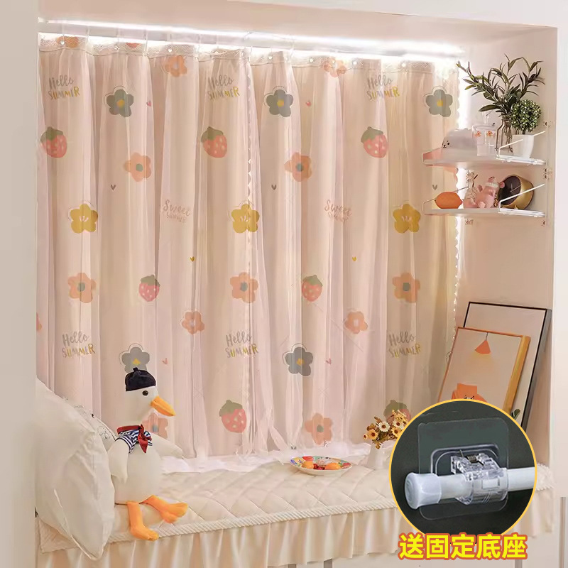 2025년 신형 커튼은 빌라 여아를 위한 설치용 구멍이 없는 간단한 텔레스코픽 레일 차양 커튼으로 거즈가 있는 이중 레이어로 빛을 차단합니다.스토어 가기