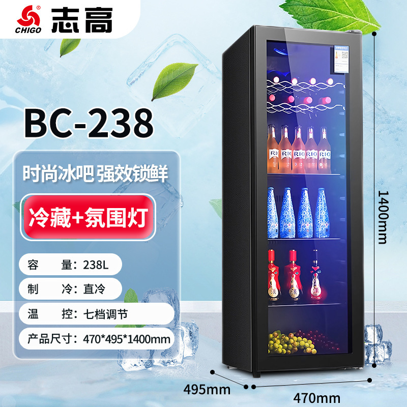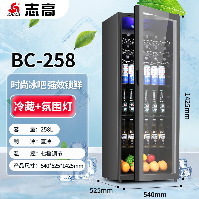 Chigo 상업용 디스플레이 냉장고 차 아이스 바 신선 유지 시가 레드 와인 음료 냉장고 투명 매장 소형 냉장고