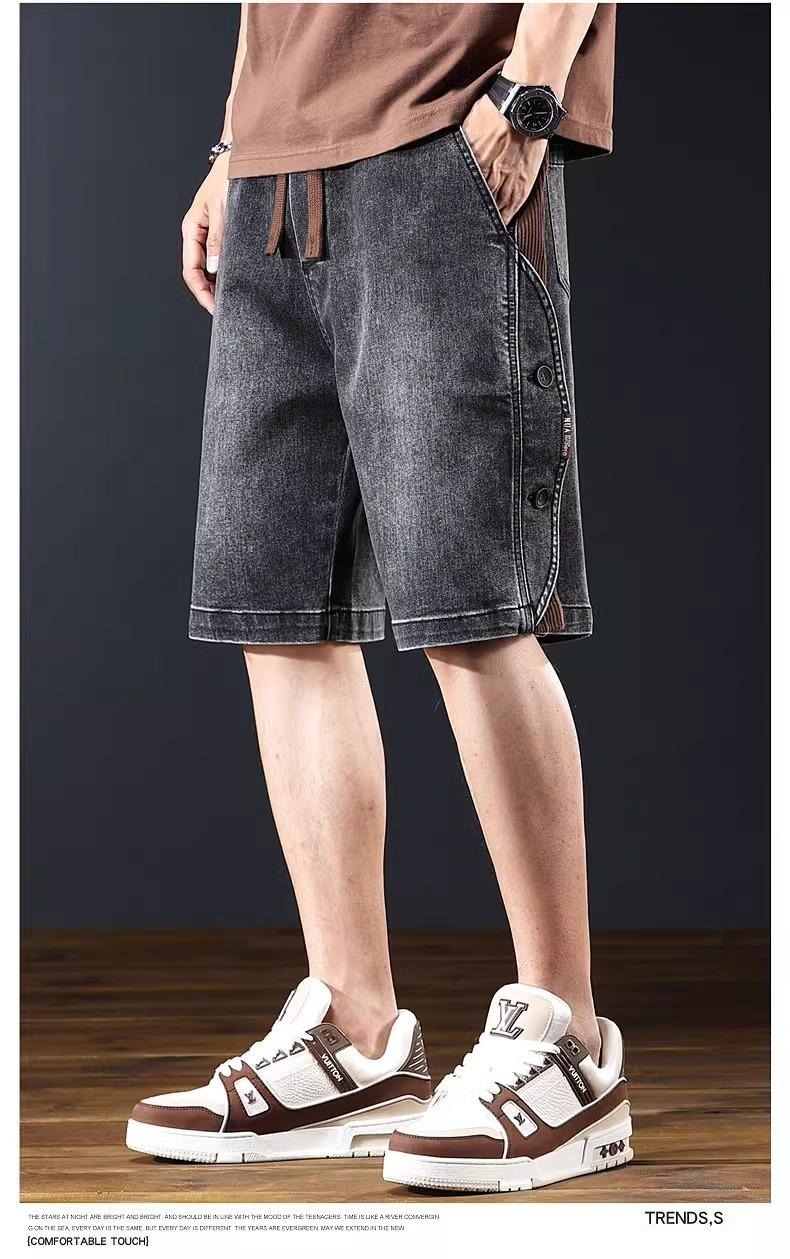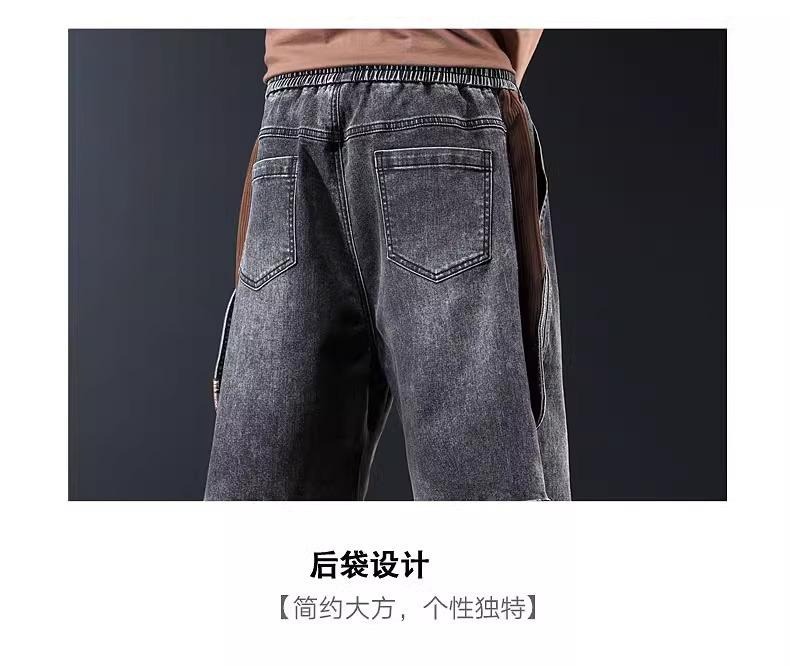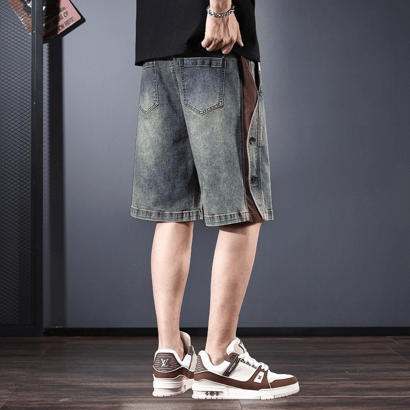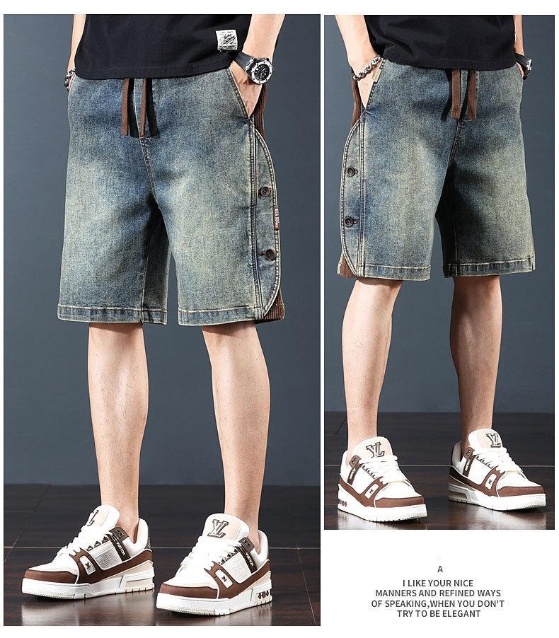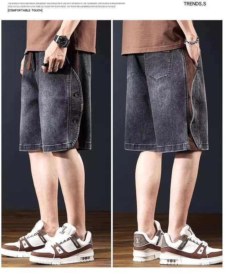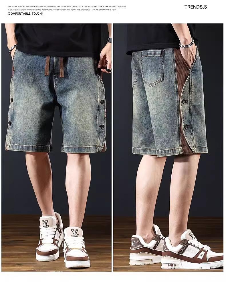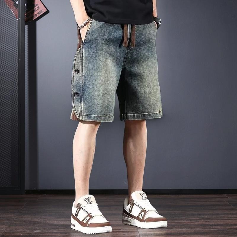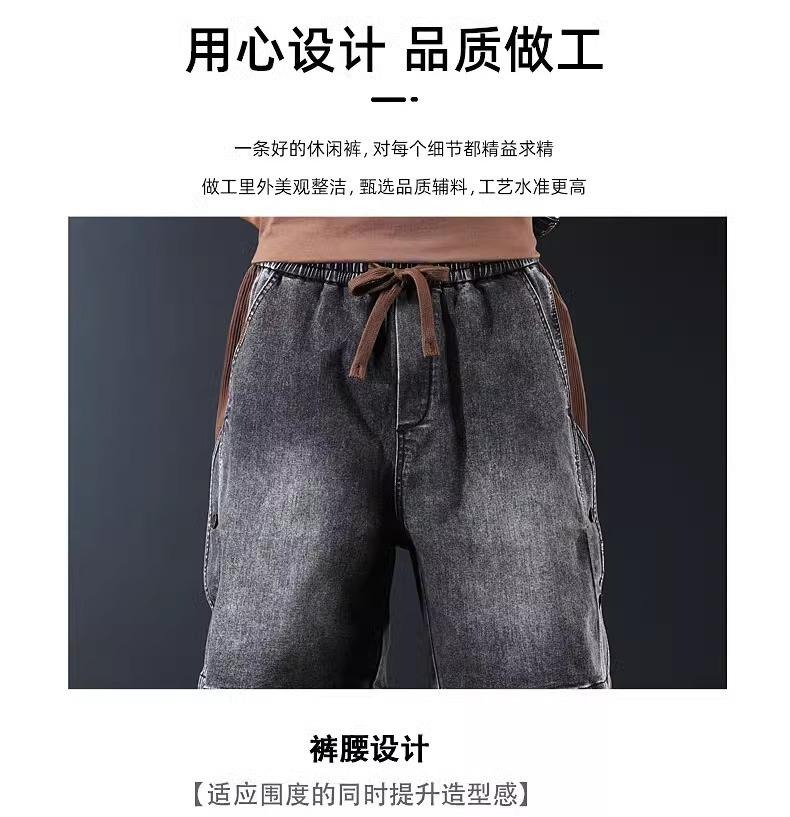 아메리칸 레트로 데님 반바지 남성 여름 신작 루즈 스트레이트 헤비 워싱 5부 팬츠 캐주얼 스플리싱 팬츠