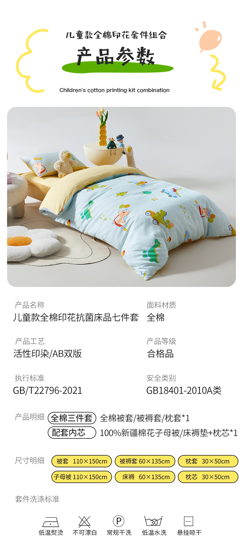 • 3종세트[이불커버 110x150cm, 매트리스커버 60x135cm, 베개커버 30x50cm]