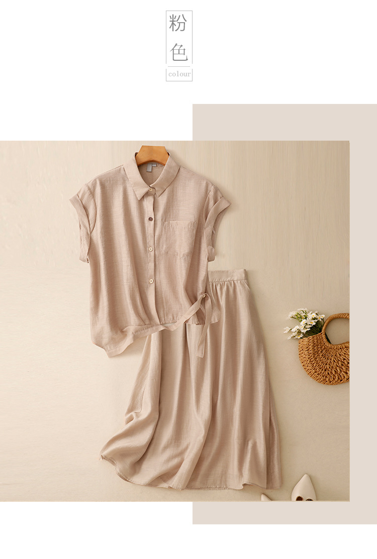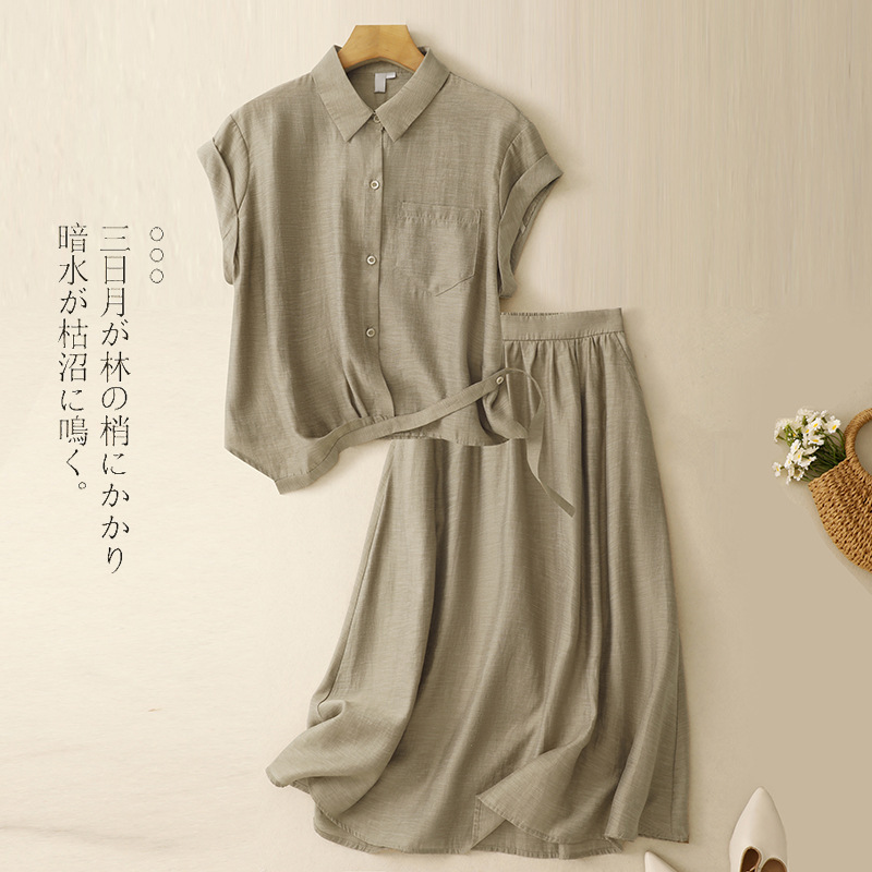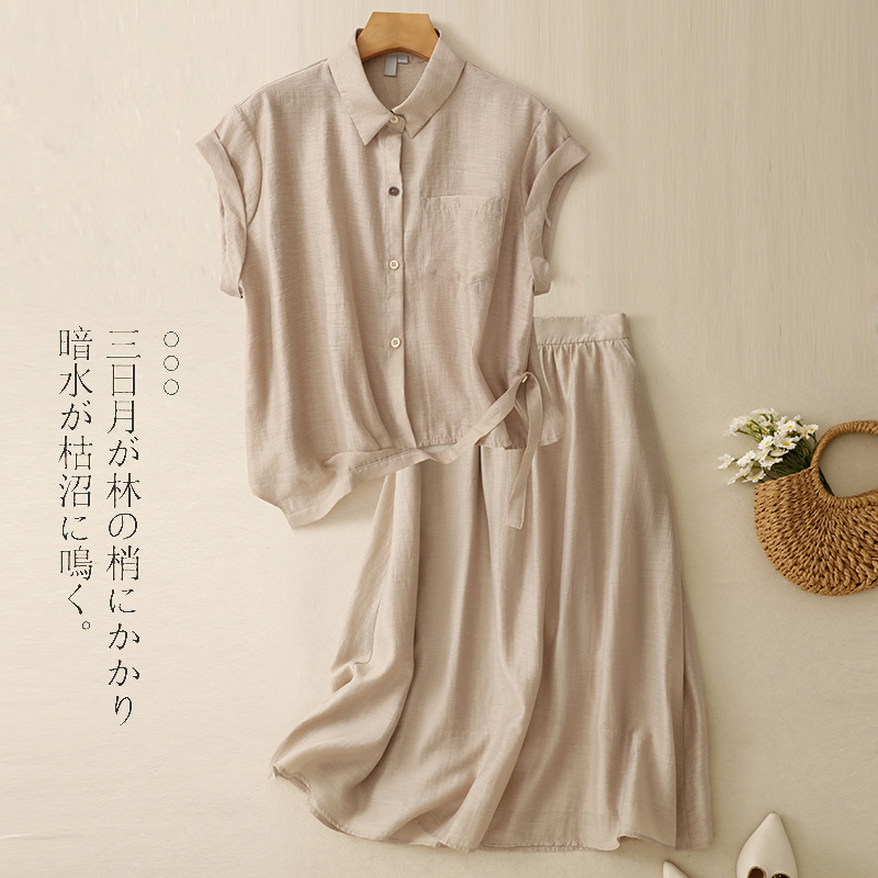 2025년 여름 신상 리오셀 심플하고 가벼운 셔츠 슈트 스커트 여성스러운 캐주얼 스커트 투피스 세트