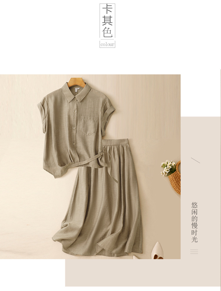 2025년 여름 신상 리오셀 심플하고 가벼운 셔츠 슈트 스커트 여성스러운 캐주얼 스커트 투피스 세트스토어 가기