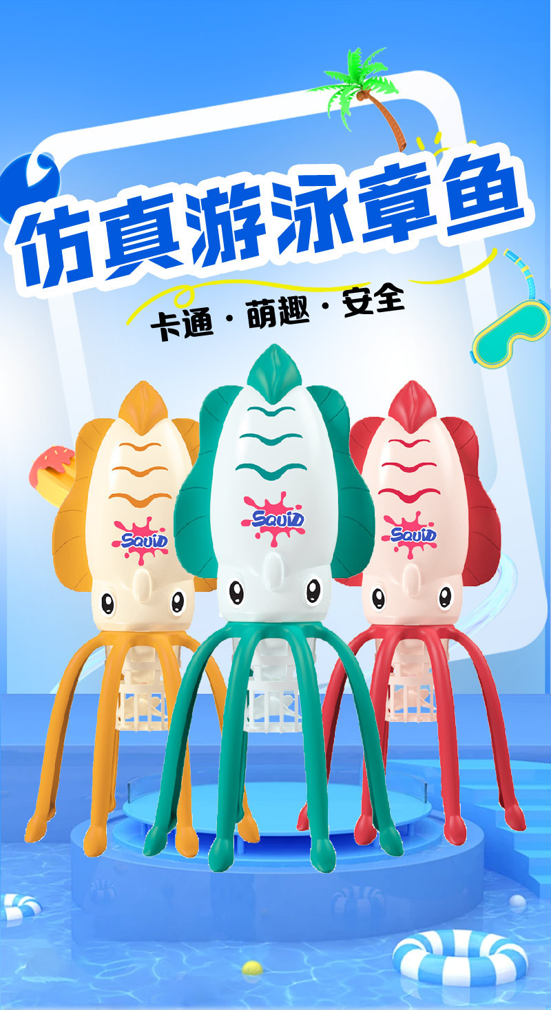 국경 간 어린이 여름 야외 수영 문어 만화 모양 전기 시뮬레이션 오징어 장난감 아기 욕실 물놀이스토어 가기