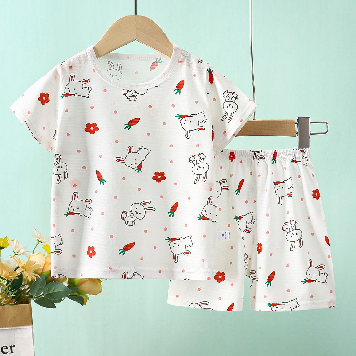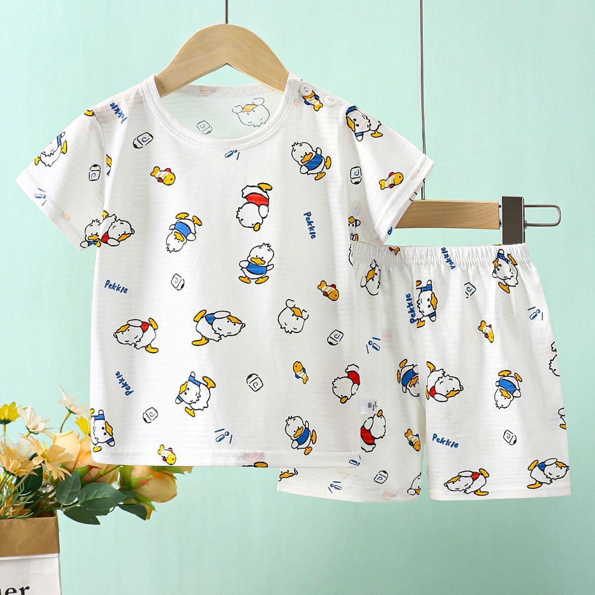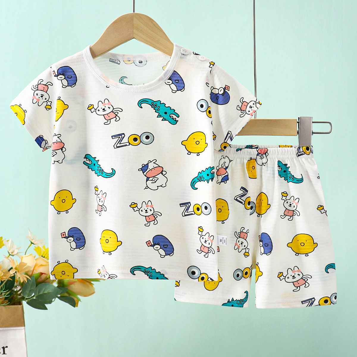 아동용 반팔 양복, 여름 면 아기 대나무 면 에어컨 의류, 가정복, 소년 소녀 반팔 잠옷